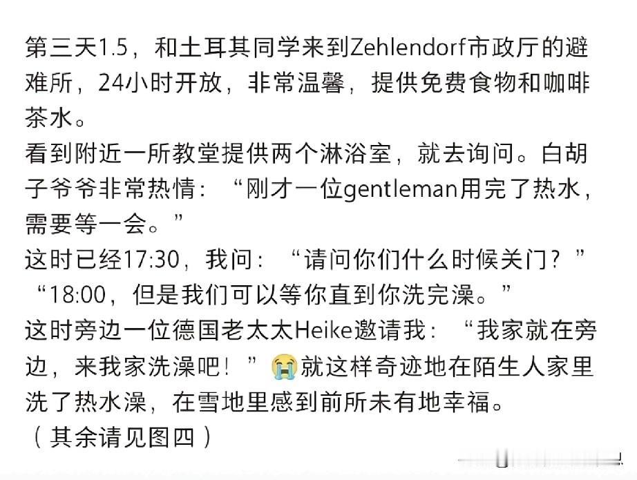 前几天柏林发生一起纵火事件,导致柏林大部分地区停电,持续了整整三天。 停电期间一位柏林的留学生写下了《我感受到柏林停电的幸福》引发热议。留学生在文中说:“停电的这三天,我和室友做了很多平时没时间做的事,没时间听的歌,没时间看的书,没时间聊天……所以我感受到幸福。”看到这儿你可能会想,这不就是传说中建立在别人痛苦上的快乐吗? 不过有些网友骂声不绝,对这位留学生的幸福感表示不满,说他的幸福感建立在别人被纵火焙烤后的痛苦之上。也有不少人表示支持他观点的人太悲哀了,“这是幸存者的悲哀啊!不应该沉浸在浪漫中,不应该羡慕短暂的从容,不应该为生活的不易找借口。可是我们该怎么办呢?我们都已经忘记为什么出发了。生活不易。”一句“生活不易”道出了很多人的心声,但真正的苦难不会因为你个人的浪漫而减轻,生活也不需要你用这样的方式来体验。