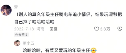 年级主任骑电车追小情侣,结果玩漂移把自己摔了,哈哈哈哈哈
