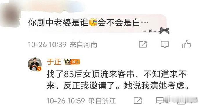 于正这波“85花顶流”悬念玩得溜!原以为是杨幂、赵丽颖级别的大咖,结果谜底是张慧雯~ 33岁的她被按上“85花”标签,还要和大15岁的于正演夫妻,路透簪发对视直接引发吻戏猜测。好在导演火速辟谣“无亲密戏”,网友调侃的“张慧雯工伤”才算没实锤。友情客串仅拍一天,却凭离谱搭配出圈,这波话题营销于正又赢麻了,就说这对“邪门CP”谁不好奇?