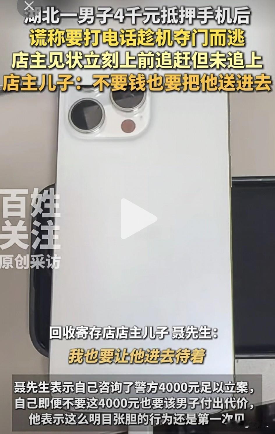 狠人!男子拿iPhone作抵押借4千,借口打电话取回直接就“百米冲刺”,警方介入:涉嫌抢夺罪! 见过“空手套白狼”,没见过“手机套现再百米赛跑”的绝活! 2025年12月的武汉,就有这么一位“天才型选手”,上演了一出抵押诈骗与街头竞速的混合双打。 事情得从12月7日说起。一位男子拿着台白色iPhone 15 Pro Max,走进聂先生妈妈开的回收寄存店。 他说手头紧,想用手机抵押借点钱。256G的国行顶配机型,成色不错,最终谈妥借款4000元。白纸黑字一签,钱货两清,当时看,一切正常。 可谁都没想到,这大哥憋着个“大招”呢! 六天后的12月13日晚上,男子又回来了。他一脸着急,说:“阿姨,我急事得打个电话,手机让我用一下行吗?” 聂妈妈想着手机本来就是人家的,打个电话也正常,就把手机递了过去。 谁料,手机刚一上手,男子瞬间变脸!他一把攥紧手机,扭头就跑,动作丝滑得堪比百米起跑,一溜烟就消失在了夜色里。 店里的监控完整记录下了这戏剧性的一幕:聂妈妈在后面追,但哪追得上这“博尔特附体”的选手啊! “这是明抢啊!”聂先生得知后气愤不已。报警后,警方效率很高,迅速联系上了这名男子和他的家人。 对方在电话里倒是“态度良好”,满口答应“会还钱”,可就是光打雷不下雨,承诺成了空头支票。 这下聂先生彻底火了,他直接放话:“这钱我可以不要,但这个法律责任,你必须承担到底!”态度坚决,准备刚到底。 律师看完都摇头:这操作可真“刑”!以抵押为名拿走借款,再借口骗回抵押物逃跑,这已经不是简单的民事纠纷了。 他这种行为,完全符合“抢夺罪”的构成要件——以非法占有为目的,公然夺取他人财物。那部iPhone,在抵押期间,保管权就在店家手里,他这么一抢,事情的性质就变了。 目前,警方已按刑事案件的标准立案处理。这位“短跑健将”恐怕很快就要体会到,人生的赛道,可不止眼前这条街——还有法律的跑道在等着他。 这事也给各位提个醒:抵押交易,手续规范是关键;遇到借口拿回抵押物的,得多留个心眼。贪小便宜玩套路,最终套住的,多半是自己。 对于这种“借钱靠演技,逃跑靠体力”的行为,你怎么看?如果你是店主,你会怎么做?评论区聊聊你的看法! 素材来源:百姓关注,侵联删! 带定位晒今日生活 我的今日状态:🏃➡️运动 我这里的天气:☀️晴天