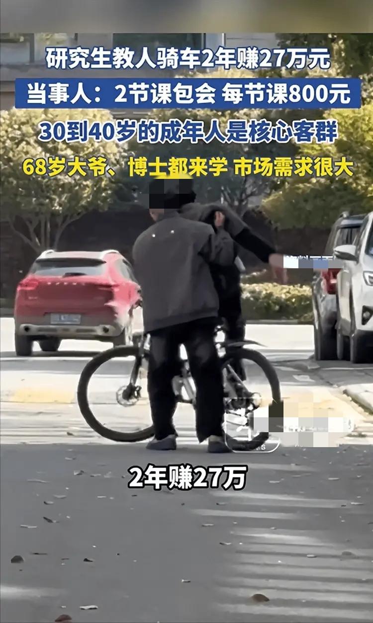 今天给大家说个稀奇事,研究生教成年人骑自行车,两年居然能赚27万! 上海这位