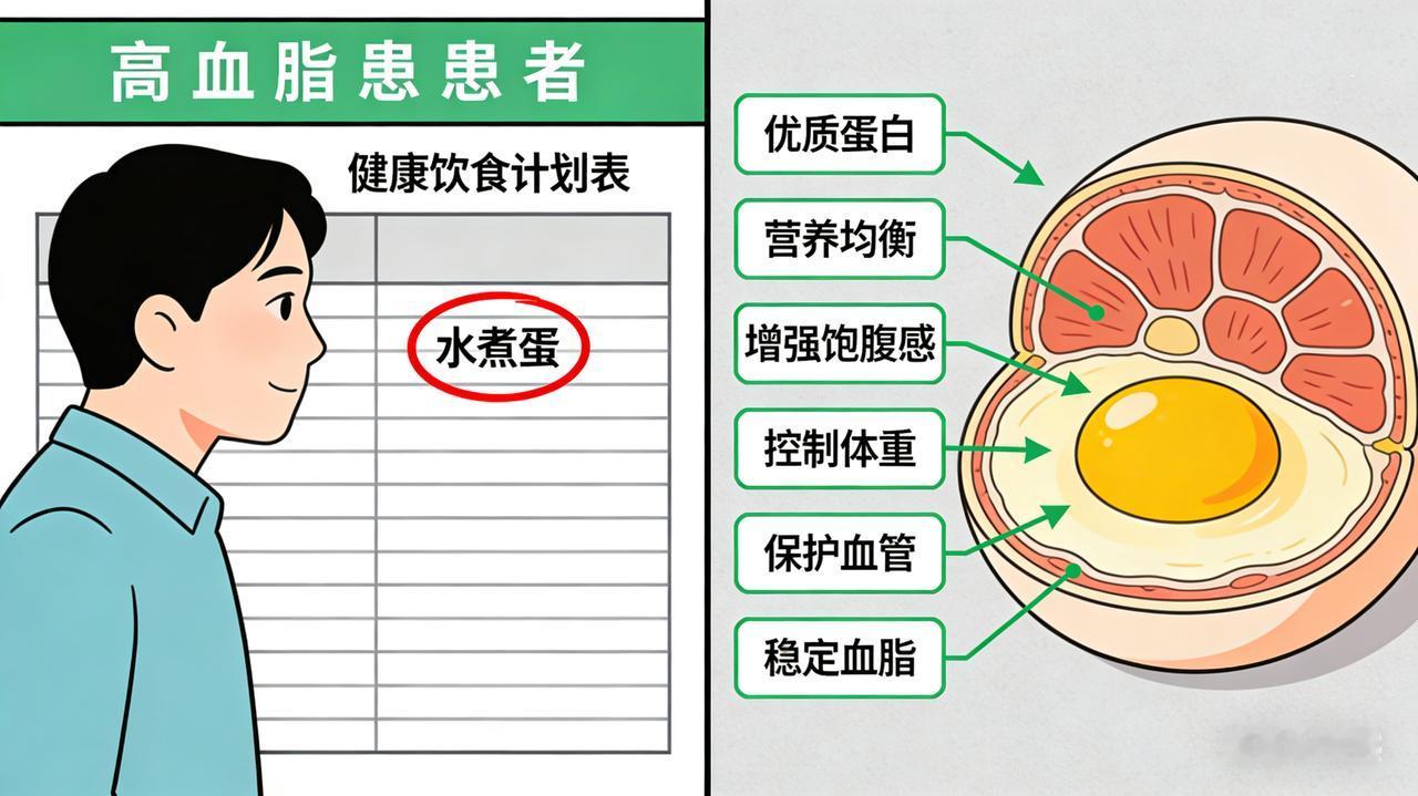 医生揭秘:高血脂患者每天吃水煮蛋的 6 大好处 标题:医生惊人发现:高血脂与鸡蛋并非“死敌”!坚持每天一枚水煮蛋,血管或迎6重逆转 长期以来,蛋黄中的胆固醇让高血脂患者如履薄冰。然而,临床营养学的最新视角为鸡蛋“平反”:对于血脂异常人群,每天一枚水煮蛋不仅是安全的,更是调节代谢的“黄金支点”。坚持一段时间,身体或将发生以下深层质变: 1. 血脂的“逆向转运” 这是最核心的改变。蛋黄中的卵磷脂是强效乳化剂,能将血管壁沉积的“坏胆固醇”包裹并运回肝脏代谢,同时显著提升“好胆固醇”(HDL)水平,实现血脂结构的真正优化。 2. 血糖的“稳压锚点” 鸡蛋是天然的“零升糖”食物。其优质蛋白能延缓胃排空,长效抑制饥饿素。早餐一枚蛋,能有效避免餐后血糖过山车,从源头切断高糖诱导的甘油三酯合成。 3. 肝脏的“减脂引擎” 许多高血脂伴发脂肪肝,根源常是优质蛋白缺乏。蛋黄中的胆碱是合成载脂蛋白的必需原料,如同给肝脏注入“燃油”,加速脂肪转运,辅助逆转脂肪肝。 4. 血管的“弹性修复” 蛋黄富含的维生素D、B12及叶黄素,是修复血管内皮的“微观工匠”。它们能对抗氧化应激,增强血管壁韧性,使血管在应对血压波动时更从容。 5. 体重的“隐形推手” 一枚蛋仅70大卡,却提供94%生物利用率的蛋白质。这种“低卡高营”特性,能在减脂期保护肌肉流失,维持高基础代谢,让体重不知不觉回落。 6. 脑力的“充电站” 高血脂常伴脑雾与焦虑。蛋黄中的胆碱是神经递质乙酰胆碱的前体,有助于稳定神经传导,改善记忆力减退,让情绪更平稳。 医生叮嘱: 关键在于“水煮”!高温油炸会破坏卵磷脂并引入反式脂肪。每天一枚,全熟为佳,搭配膳食纤维,这枚小小的鸡蛋将成为您血管健康的坚实盾牌。