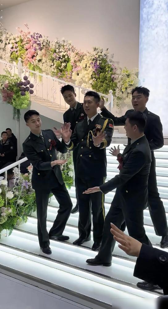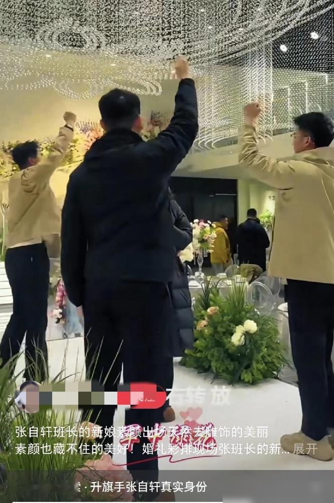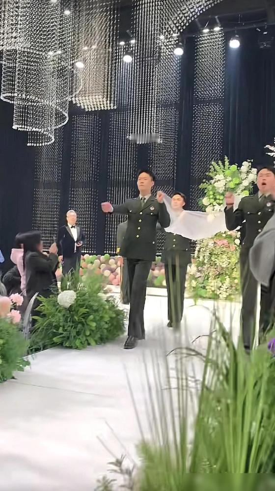 原国旗护卫队升旗手张自轩结婚,竟然把军装穿到了婚礼现场,带着护卫队的同班成员一起