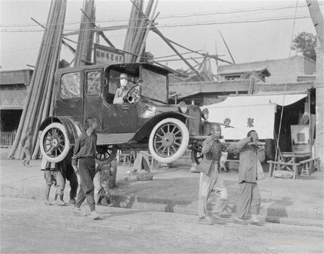 这张上世纪初的丧葬民俗照片,画面里的“西洋汽车”并非真车,而是葬礼所用的纸扎冥器——它仿着当时刚传入中国的西式汽车样式,车窗、车轮的细节都做了还原,驾驶位上还立着“司机”纸人,模样鲜活。 几个穿粗布短衫的汉子弓着肩,把这纸扎汽车稳稳架在肩头,裤脚沾着尘土,鞋帮磨得泛白,是老城巷弄里常见的力夫模样,脚步沉缓,衬着葬礼的肃穆。后面堆得老高的木材棍斜支着,旁侧棚帘上 “聚” 字隐约露出来,是市井里的木料摊或杂货铺,烟火气裹着这 “西洋新奇” 的纸扎,让时髦的冥器落进了最朴素的民间日常。