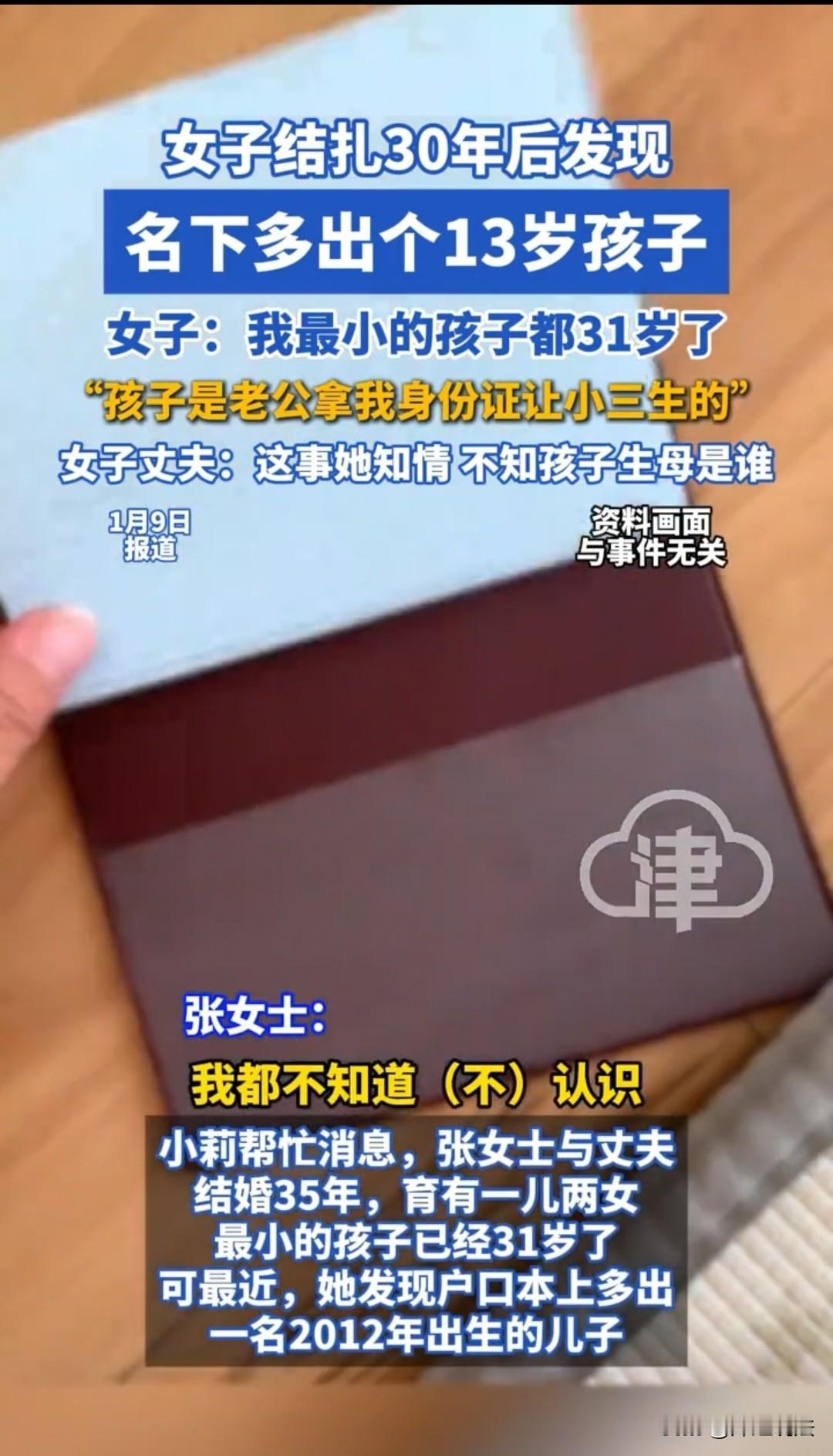 河南,60岁的阿姨在户口本上发现多了一个13岁的儿子,后来才知是老公带孕妇去生产,还用了阿姨的身份证办理手续——身份证、户口本一直由老公保管。2017年闺女结婚补办证件时,阿姨才发现此事。她质问老公,对方轻描淡写说“就多一个娃娃”,问孩子是不是他的,他竟说“不确定”。医院称当时产妇即将临盆,只能先接生;数月后对方持相关材料来办出生证明,医院依规办理。派出所也表示,对方提交的资料齐备,按程序完成了户口登记。阿姨痛心:遇人不淑,一辈子的悲哀,枕边人竟如此算计。人活一世,终究凭良心。相伴几十年,最后被最亲的人伤害,60多岁的她实在难以承受,决心起诉老伴重婚罪。 阿姨如今60多岁,生了三个孩子,早已年老色衰。她和老伴没什么过多沟通,几乎所有精力都用来帮三个孩子带孙辈。 而她的老公,一把年纪了却整天打扮得花枝招展,那股精神头,实在不像是这个年纪该有的状态。 阿姨总感觉他有什么事情瞒着自己,可自己精力有限、能力有限,总觉得只要他每天归家,不做出格的事情,便由着他去吧。 孩子们也缺父亲的陪伴,她不想再折腾了。哪个年纪做哪个年纪的事才最稳妥,别最后丢了西瓜捡芝麻,惹得一身骚。 老伴当面满口答应,背后却依旧我行我素,整天莺歌燕舞,穿着讲究地出门。 后来阿姨越发觉得,老伴可能背叛了自己,但也只是怀疑,她既没有去查证,也没有能力去查证。 子女们自顾不暇,要上班挣钱养娃,根本没有闲暇时间去调查这些事。再说他们和父亲没有住在一起,对父亲的约束也少了几分。 2017年,阿姨的女儿快要结婚,需要户口本,可翻来翻去怎么也找不到。 阿姨赶紧打电话问在外的老伴,让他把户口本拿出来,好让闺女去办理结婚证。 老伴的语气却有些生硬,还带着几分慌张:“我怎么知道?没有户口本,就用其他证件去办理呗。” 可办理结婚证确实需要户口本,阿姨只能四处询问该怎么办。有人告诉她,可以去派出所补办。 就这样,阿姨拿着自己的身份证件到派出所补办户口本。可翻开新补办的户口本一看,她瞬间懵了——除了自己、老伴和三个孩子之外,怎么还多了一个13岁的孩子? 阿姨瞬间如遭晴天霹雳,但很快定了定神,忙问工作人员:“你们是不是弄错了?我只有三个孩子,这个13岁的孩子是谁呀?” 工作人员表示:“系统显示这个孩子就是你的呀,你怎么会不知道?你是不是年纪大了,记糊涂了?” 反复确认后,阿姨立刻警觉起来:自己的第六感果然没错,老公不但背叛了自己,肯定还和外面的人生了孩子。 有了这个想法,她赶紧把孩子们都召集回来,还把老伴也叫了回来,当面对质这个孩子到底是怎么回事。 老伴支支吾吾说不出个所以然,只一个劲辩解:“谁知道呀?你们问我,我去问谁呢?” 后来大家多方调查,才发现真相:老伴在2012年带着一名产妇去医院生产,当时用的是阿姨的身份证;办理出生证明时,用的也是阿姨的身份信息,所以孩子才被上在了阿姨的户口本上。 阿姨惊呼:自己的老伴居然能瞒天过海!这是何等的毒 辣!自己搞外遇,还把孩子挂在自己的户头上,这简直是诛心之痛啊! 阿姨一家质疑,医院当时为什么不仔细核对信息?这也是他们最不满的地方。 医院工作人员表示:“当时孕妇马上就要生产了,人都送来了,我们能不帮忙接生吗?” “况且隔了几个月,对方拿着相关证件来办出生证明,时间过去那么久了,人家手续齐全,你说我们该不该给办理?” 工作人员也承认,工作上可能存在疏忽,会进行自查,该处罚的处罚,该追责的追责。 事已至此,人家已经认错,说实话,在那种紧急情况下,换做任何人,恐怕也只能这么处理。 阿姨一家又质问派出所:为什么要把孩子上在自己的户口本上?怎么就不经过核实呢?这也是他们无法接受的地方。 派出所工作人员也表示:“当时你老伴拿着全套的出生证明、身份证件、户口本,资料齐备,我们凭什么不给办理呢?” 这么一听,好像对方确实没有错。人家拿着所有证件前来办理,按规定本就该予以办理。 最后,阿姨只能把矛头指向老伴,事实上也只能指向他——因为他才是这件事的始作俑者。 可老伴依旧轻描淡写地说:“不就多了个孩子吗?” 大家再追问孩子是不是他的,老伴居然说“不确定”。 这样的狡辩根本骗不了任何人,反而让大家更加确信,老伴就是做了对不起阿姨的事,还把外面的孩子挂靠在了阿姨的户口本上。 最后,善良了一辈子的阿姨下定决心,要起诉老伴,追究他的重婚罪。 网友们看到后,纷纷表示支持:就应该这样做!善良也该露出锋芒,不能被枕边人欺负了,还要忍气吞声一辈子。 阿姨到底能不能胜诉呢? 阿姨的老伴婚外生子,是重婚罪重要佐证,但需结合其与他人以夫妻名义共同生活的证据定罪; 另外,冒用阿姨身份证违法,阿姨可诉离婚并索赔。 大家如何看此事? 小莉帮忙2026.1.8