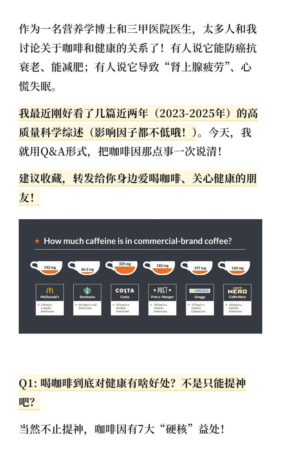 有没有发现近几年越来越多人喝咖啡? 我们上周开科会,就说打算做一项关于咖啡与节律性的研究(很有意思!)。 在不同的时间喝咖啡可能会导致不同的outcomes。 而且每个人对咖啡因的反应也是不一样的,有的人喝咖啡会心悸手抖,喝很多茶却不会。 你喝咖啡吗?一天喝多少杯? 不同品牌的咖啡豆咖啡因差别也很大,你最喜欢喝哪家的咖啡?