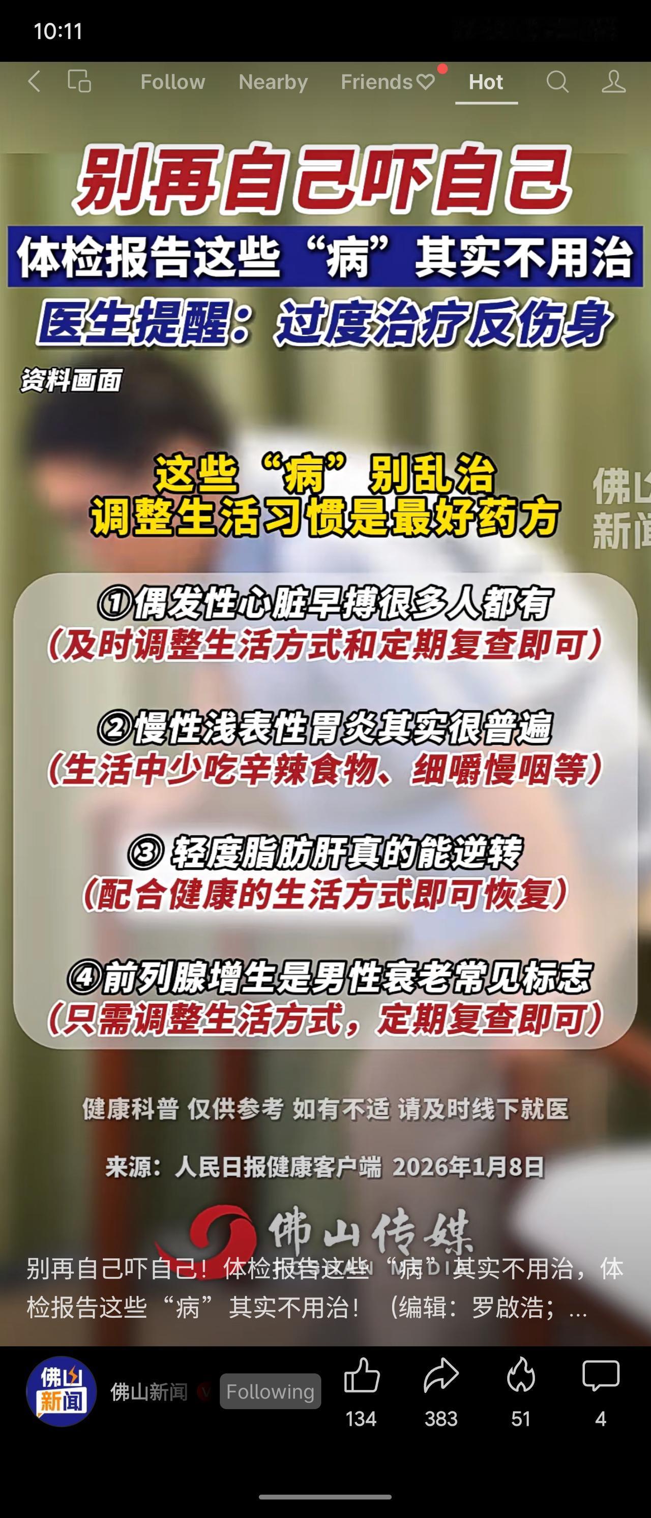 根据《人民日报》健康科普,体检报告中的多项“异常”实为正常老化表现,无需过度治疗