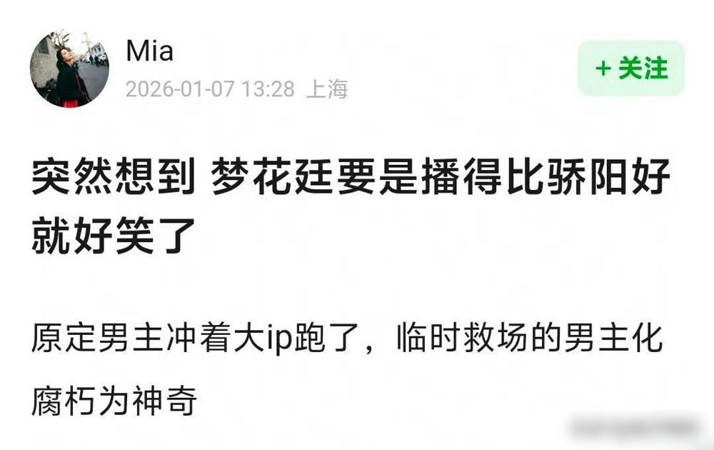 《梦花廷》要是爆了,宋威龙会很尴尬吧?当初他弃了《梦花廷》跑到《骄阳似我》,陈哲远临时救场,网友都说宋威龙的选择正确。 其实就是原本定好的男主换了人,宋威龙为了去拍那部《骄阳似我》推掉了这边的邀约,最后是陈哲远临时过来接的摊子。 但我总觉得这事儿没那么简单,虽然宋威龙的颜确实很能打,但真论起那种“扛剧”的玄学体质,陈哲远现在的路人盘可能更稳一些。 毕竟陈哲远之前有《偷偷藏不住》这种现象级爆款压阵,今年的《一笑随歌》口碑也挺扎实,他在言情赛道的观众认可度是在线的。 我更在意的是剧种的先天优势,古偶的受众底盘本来就比现偶大一圈,只要剧情不拉胯,基本就是旱涝保收。 再加上女主是张婧仪,她那张自带故事感的脸拍言情剧确实有一手,这种强强联合的配置,爆的几率真的不小。 要是这剧真火了,那宋威龙当初所谓的“明智之举”可能就会被拿出来反复讨论,这种选择上的反差感挺败好感的。 有时候选剧不仅看剧本,也看命,陈哲远这次救场如果真救成了,那他在业内的地位估计还得往上蹿一蹿。 网传《梦花廷》今年3月就能上线了,到时候咱们看看数据,估计就能知道当初谁才是真的选对了。
