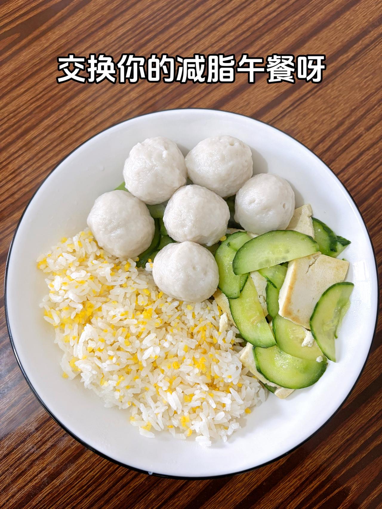 最好的减脂餐就是家常菜,目标103斤,加油 今日减脂午餐:玉米渣饭+黄瓜豆腐+鱼丸