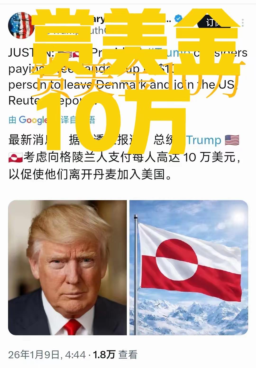 特朗普放大招,这下丹麦完蛋了! 路透社:特朗普放大招,格陵兰居民凡是愿意加入美国者,赏美金10万! 特朗普出此大招,丹麦如何应对呢?