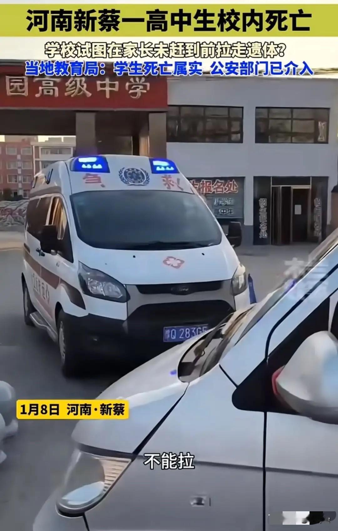 孩子在校没了,爸妈还在半道上狂奔,救护车却急着拉走遗体——河南新蔡清华园高中这事儿,真的越想越寒心。 多亏孩子的亲属(网传为姨夫)硬气,开面包车堵了校门,才守住了最后一点人伦底线。有人说这是小题大做,我却觉得,这急着转运的背后,藏着最让人不齿的逃避。 法律本就规定遗体处置要尊重家属意愿,可校方连让父母见孩子最后一面的时间都不愿等,到底是怕担责,还是想掩盖什么? 教育的本质是敬畏生命,可这所名字响亮的学校,却用冷漠给“育人”打了个不及格。 家长把孩子交给学校,求的是平安,不是连最后一面都要争来的遗憾。警方已经介入,希望能查清真相,更要让这类漠视人伦的操作无处遁形。 你觉得校方急着转运的背后,是流程失误还是刻意回避?来评论区说说你的看法~