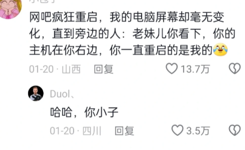 网吧疯狂重启,我的电脑屏幕却毫无变化,直到旁边的人:老妹儿你看下,你的主机在你右边,你一直重启的是我的