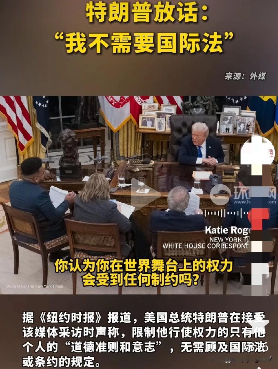 特朗普不再装了,据《纽约时报》报道,特朗普面对媒体采访时公开表示:我不需要国际法
