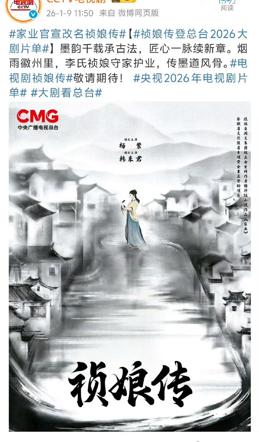 杨紫的《家业》改名成《祯娘传》,给人的感觉Low的不是一点半点 原来叫《家业》多大气啊,有正剧那味儿,而且网友从开拍就熟悉了,更利于宣传。 现在突然改名,《祯娘传》听起来就像《娘道》那种爷奶喜欢看的苦情剧类型,看粉丝安利都显得怪怪的。 试想下如果当年赵丽颖的《知否》改成《明兰传》,哪怕一样爆火,粉丝吹起来也没那么有格调吧。