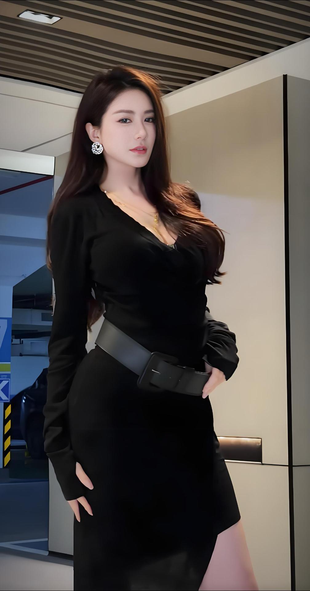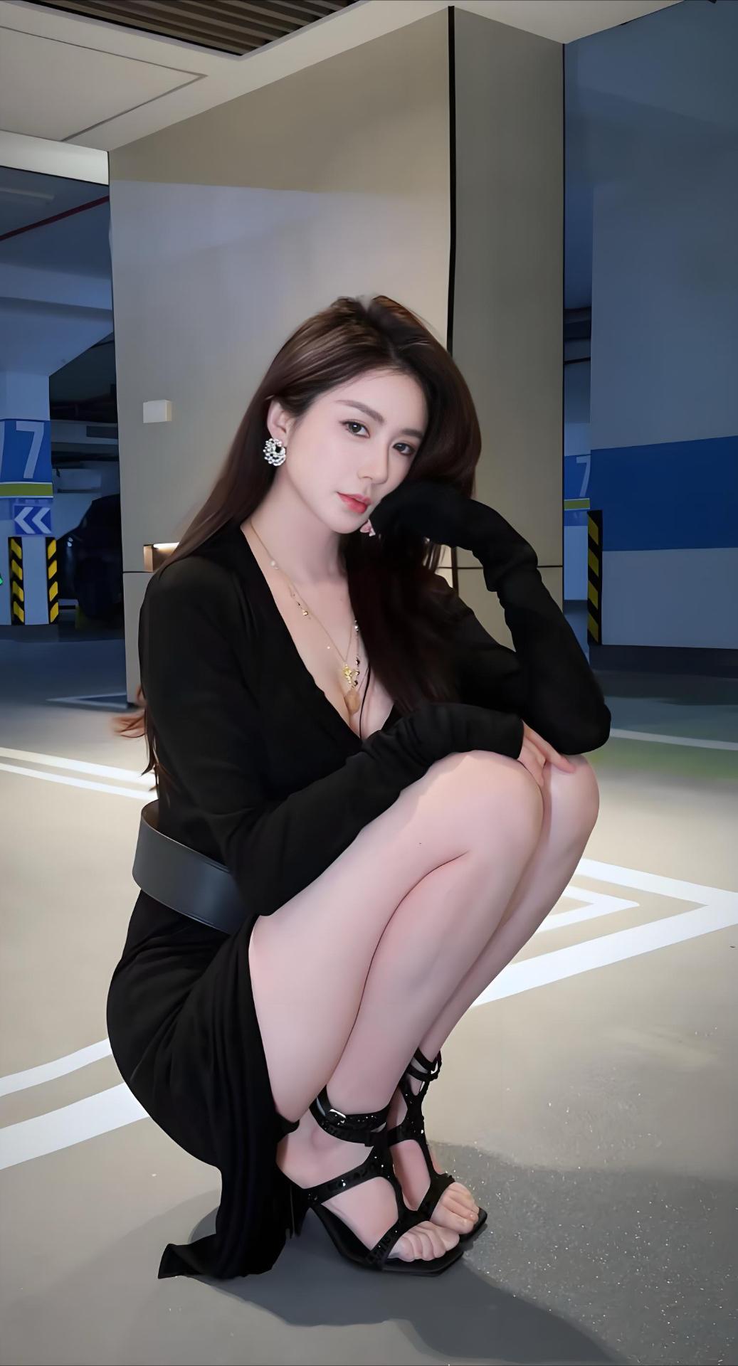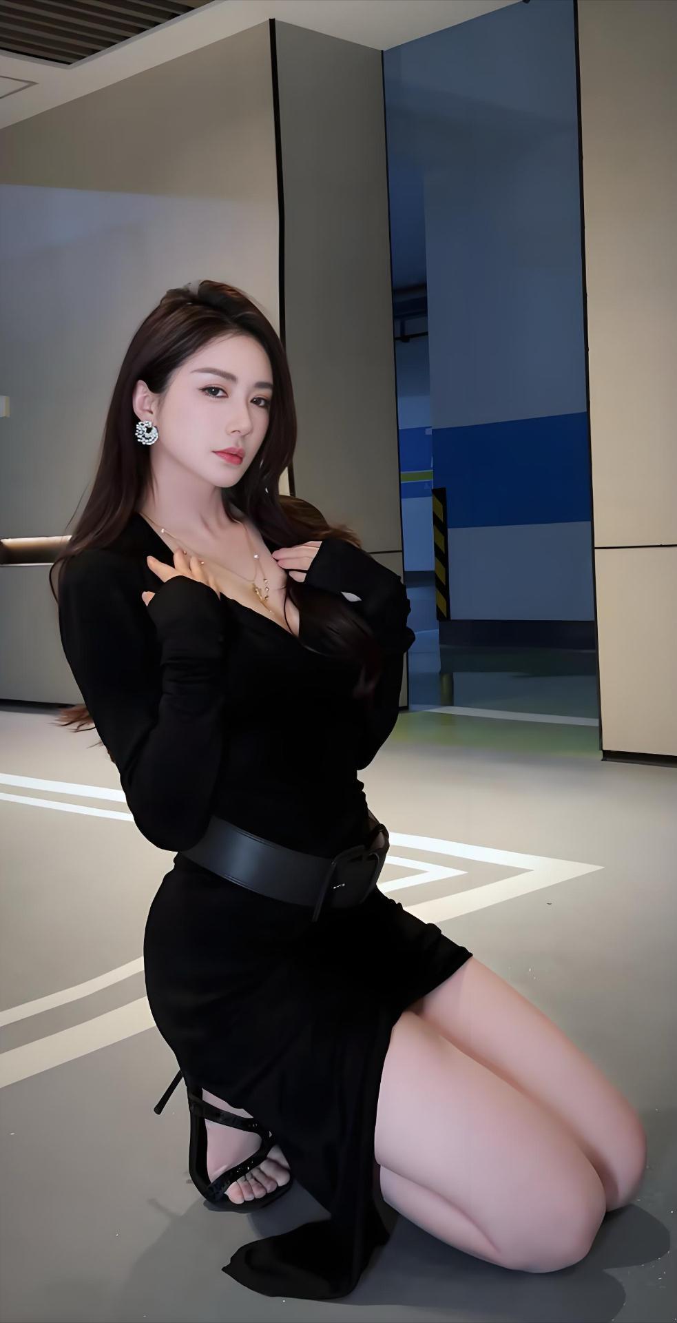 小姐姐这身黑色长裙搭配高跟鞋,气场全开,简直不要太撩人性感美女