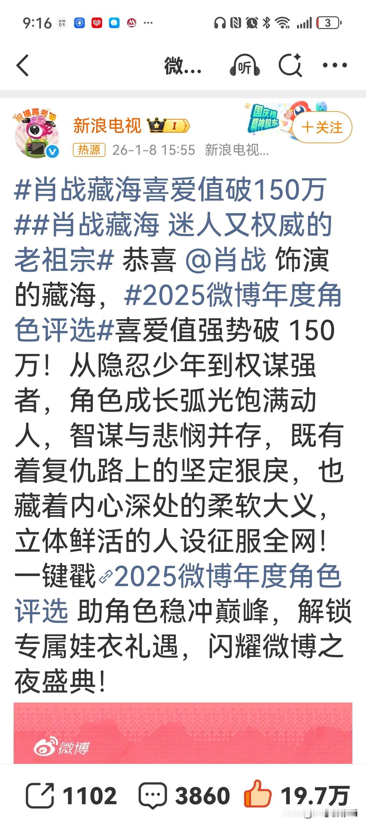 肖战藏海确实厉害👍,在一众动画人物里显得格外醒目,中国文化出海出圈的作品和人物,除了动画人物,唯一的真人就是肖战藏海了,唯一的真人剧就是肖战的《藏海传》[赞] 真人巨星的世界影响力和文化传播力可比动漫人物更加强大,看看好莱坞巨星就知道了,现在中国迎来了自己的年轻的世界巨星[赞][赞][比心]