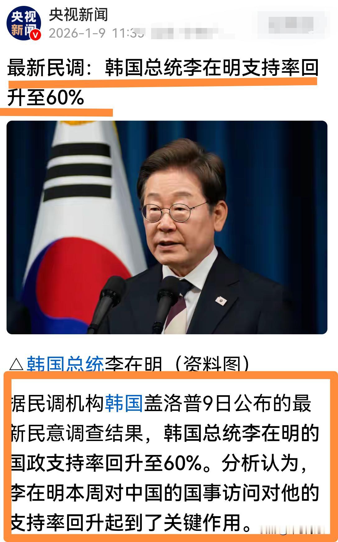 韩国总统李在明访华后,支持率重返60%!民调显示,30%正面评价直接归因于“外交”,说明选民更认可“能带来更实惠的外交”。 中韩关系回暖,既顺应“搬不走的邻居”的客观需求,也为东北亚大国互动提供新样本 。 你说呢?欢迎评论。