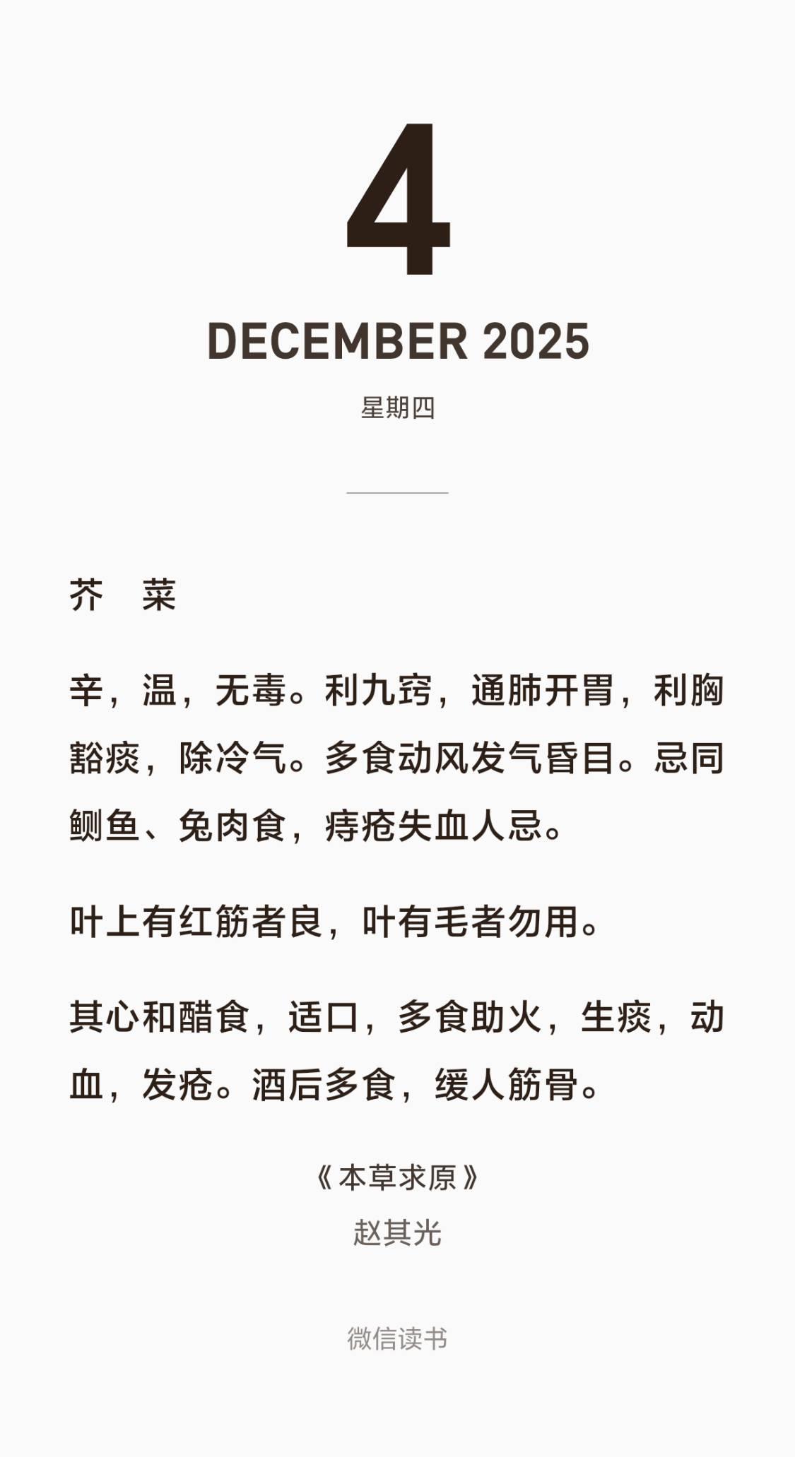 姐妹白天吃儿菜多,虽然次日通便了,但当天腹胀,当夜丑时醒。芥菜家族都算香辛料(包