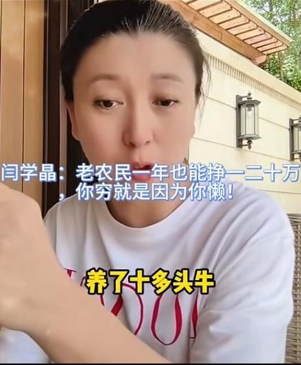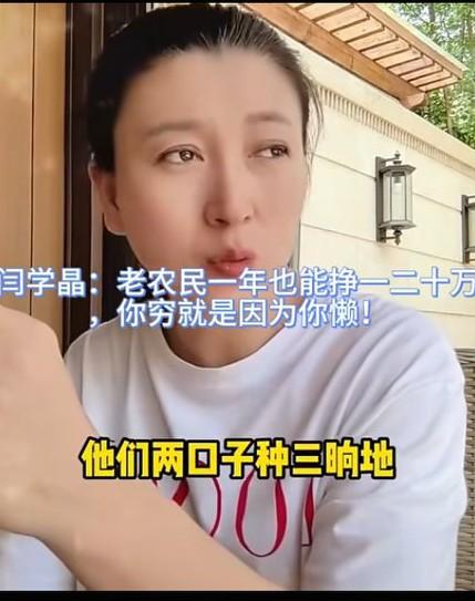 国家一级演员闫学晶在直播中表示:老农民一年也能挣一二十万,你穷就是因为你懒! 她还现身说法,举了一个例子,说是她大姐两口子,种了三垧地,养了十多头牛,一年也有十几二十万的收入。 评论区大部分网友认为闫学晶是“站着说话不腰疼”,大部分农民、可以说80-90%的农民靠种地是赚不到十几二十万的收入的。她可能脱离劳动农民这个群体太久了吧! 就闫学晶抛出的这个观点,你认可吗?
