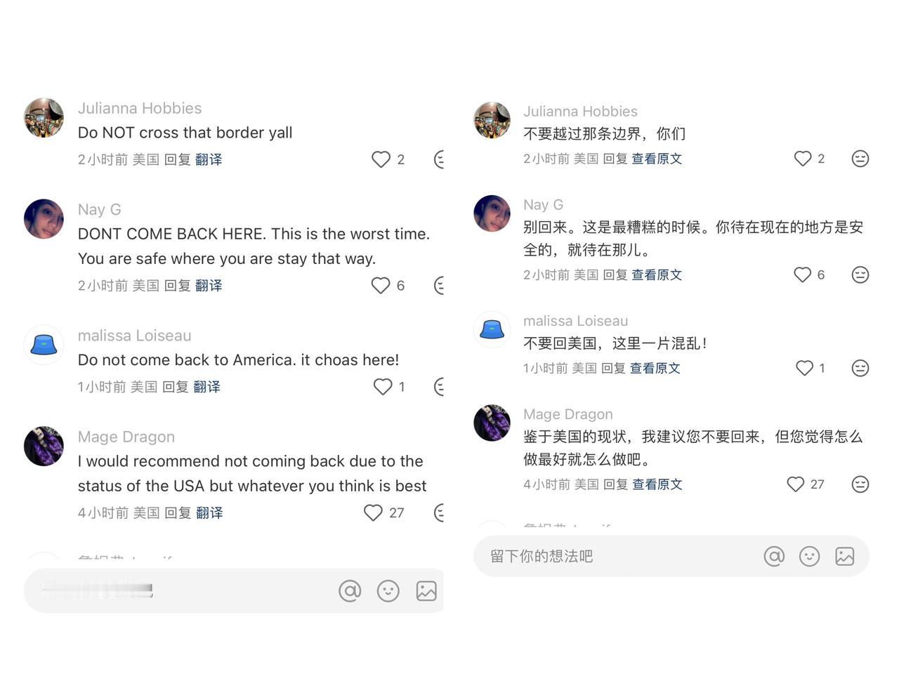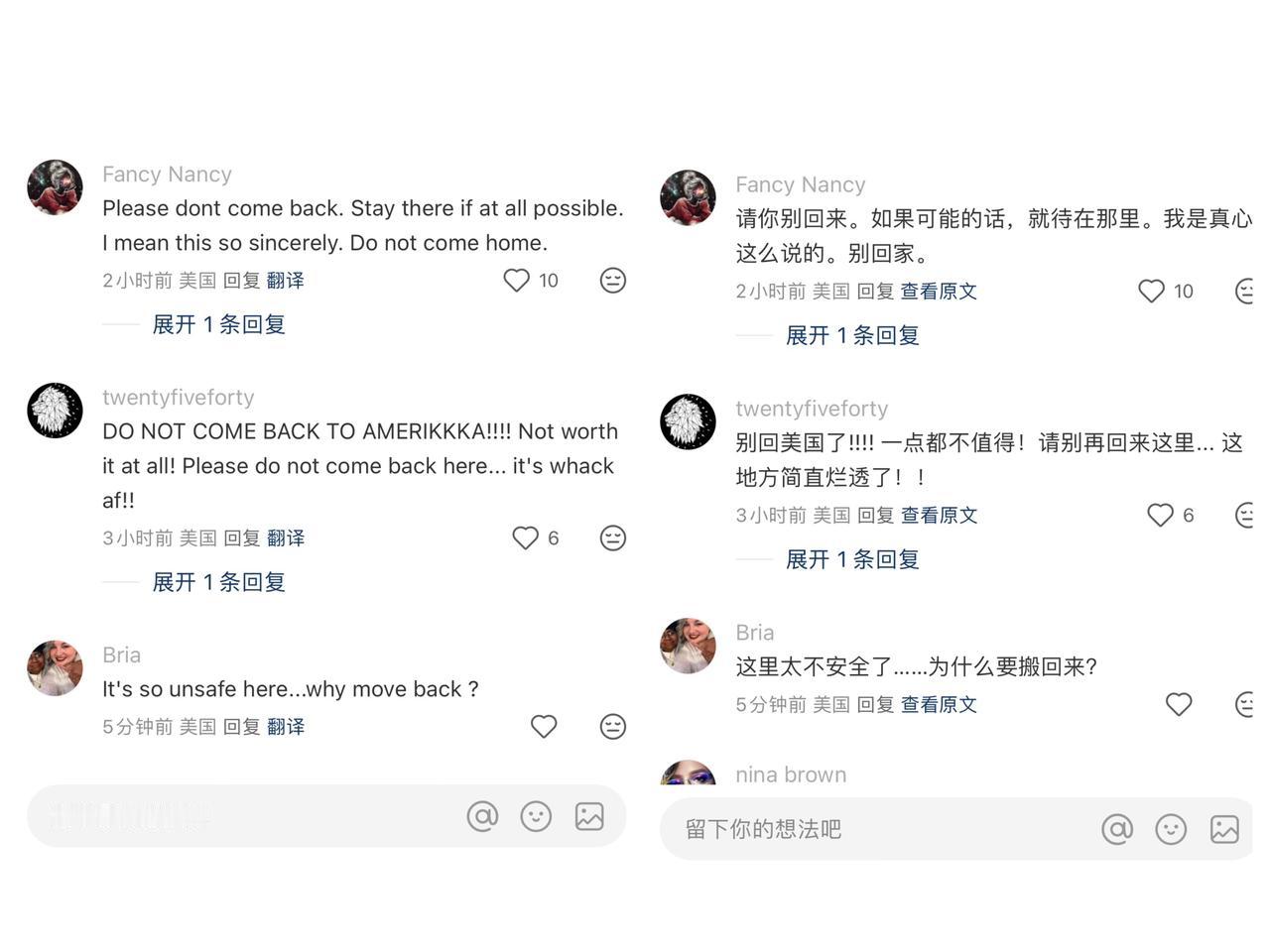 近日,一个在中国的美国网红他发视频说,他将要回美国了,回去前还特意做了个新发型…结果评论区里很多美国IP的人留言说,你们疯了吗…都在劝说他,别回去美国了,好好的继续待在中国吧… 我们只能说尊重他人意志,毕竟这里不是你们的家,快回去吧,祝你们一路顺风!