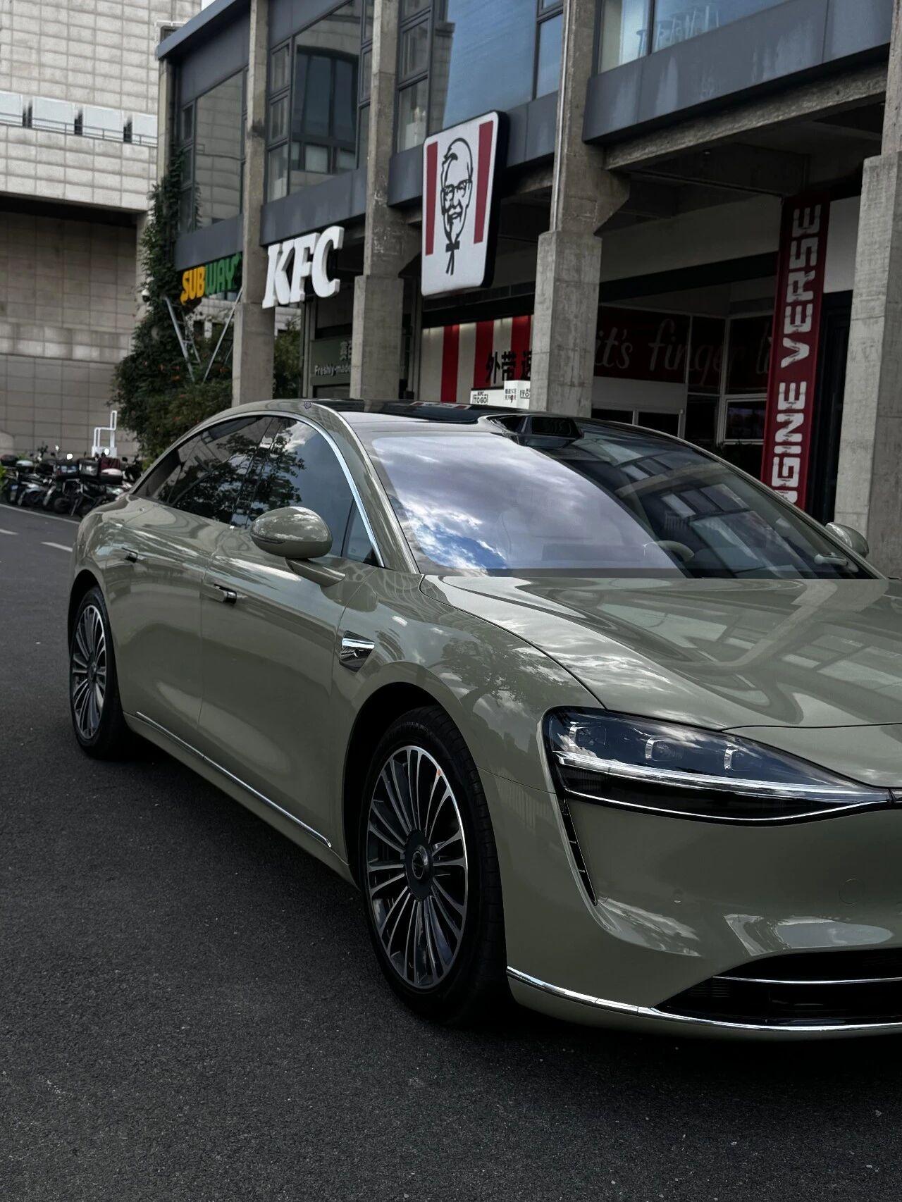 谁说享界 S9 只懂商务?改完直接变潮车!别被享界 S9 的商务外表骗了!选对战斗绿改色膜,瞬间褪去沉闷,年轻时尚感拉满。 作为智能化驾驶标杆,它既有遥遥领先的黑科技,又能靠轻改装出圈,商务与运动居然能无缝切换 —— 这波改装案例,太懂年轻人需求了!