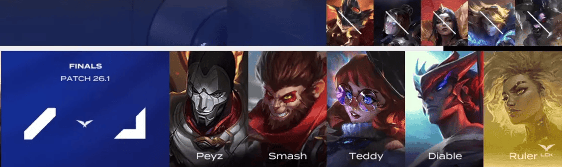 下路队选用:Peyz永恩、Smash猴子、Teddy阿萝拉、Diable烬、Ruler芮尔