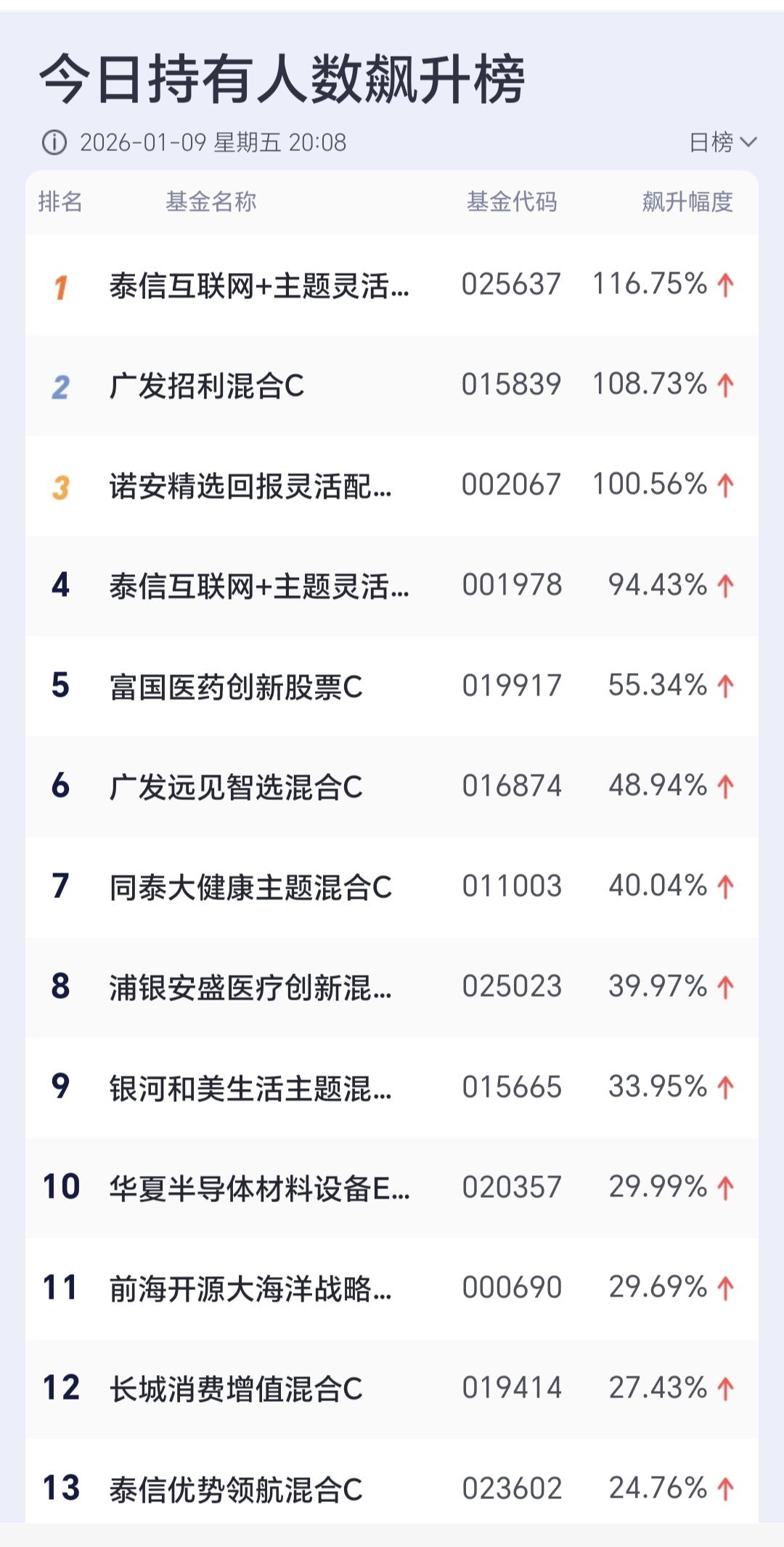 基金:有没有人建议星期六星期天市场也开盘 欧洲市场现在上涨中,法国上涨了0.85%,英国上涨了0.49%,德国上涨了0.34%,上涨幅度都不大。 香港市场今天也是上涨,恒生指数上涨了0.32%,国企指数上涨了0.10%,恒生科技指数上涨了0.15%,上涨幅度也都不大。 图3是今天基金的加仓排行榜,图4是今天基金的减仓排行榜,图5是今天基金的持有人数飙升榜,图6是今天基金的加仓人数和减仓人数,今天加仓53730001人,今天减仓25136930人,今天加仓人数超过了减仓人数。 持有的基金净值大部分已经更新,上涨幅度最大的三个板块是:医疗板块,先进制造板块,军工板块,下跌幅度最大的三个板块是:海外互联网板块,新能源汽车板块,上证50板块,净值暂时上涨了11328元。 今天市场继续上涨,是一个16连阳的走势,见下面的截图10,最近许多人都是在连续挣钱,现在想到明天和后天休息不开市,心里面还有点不是滋味,宁可明后天继续上班,市场继续开市,这样自己就可以继续挣钱。有没有人这段时间不喜欢星期六星期天休息的,有没有人想着就这样一直挣钱,有没有人建议星期六星期天市场也开盘的。 市场连续上涨,持有的基金连续挣钱,这只是短期的现象,市场不可能像这样一直上涨上去,总会有一个了断的,市场能够连续上涨,就也能够连续下跌,市场连续上涨的时候,你连续挣钱,市场连续下跌的时候,你也会连续亏钱,不要过分在意短期的盈利,只有挣到手的钱才是真的挣钱了,在没有落袋为安之前,账面上的那些收益都是浮盈,如果不能够及时的落袋为安,这些浮盈也有可能会成为浮云,当然,最近的上涨速度很快,这么快的上涨速度不容易停下来,我们手中的筹码要抓牢,这个时候进场追涨就需要考虑,每个人的思维方式不一样,每个人的心态不一样,对待近期上涨的想法也会不一样。 我每天都会分享我的观点,我的观点只代表我个人的看法,不能作为你操作的依据,据此操作后果自负。