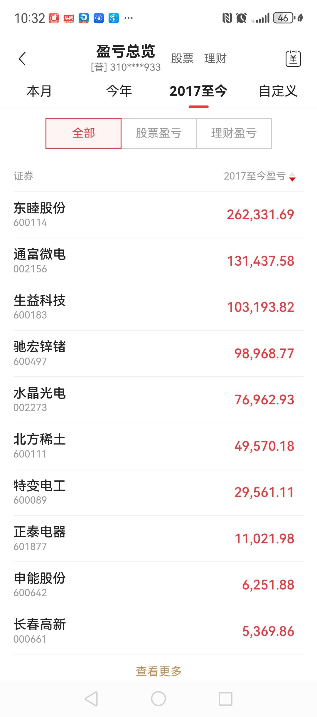 图1是近一年的收益,91%. 图2是2021年开户以来的收益180%并不高。 图3是2021年开会来所有曾经买过的股票,最难得的是没有一个是亏损的。 图4是目前持有的股票,上涨开始加速。 我的投资理念就是好价格买入好股票,不赚钱不卖,甚至不赚大钱不卖。