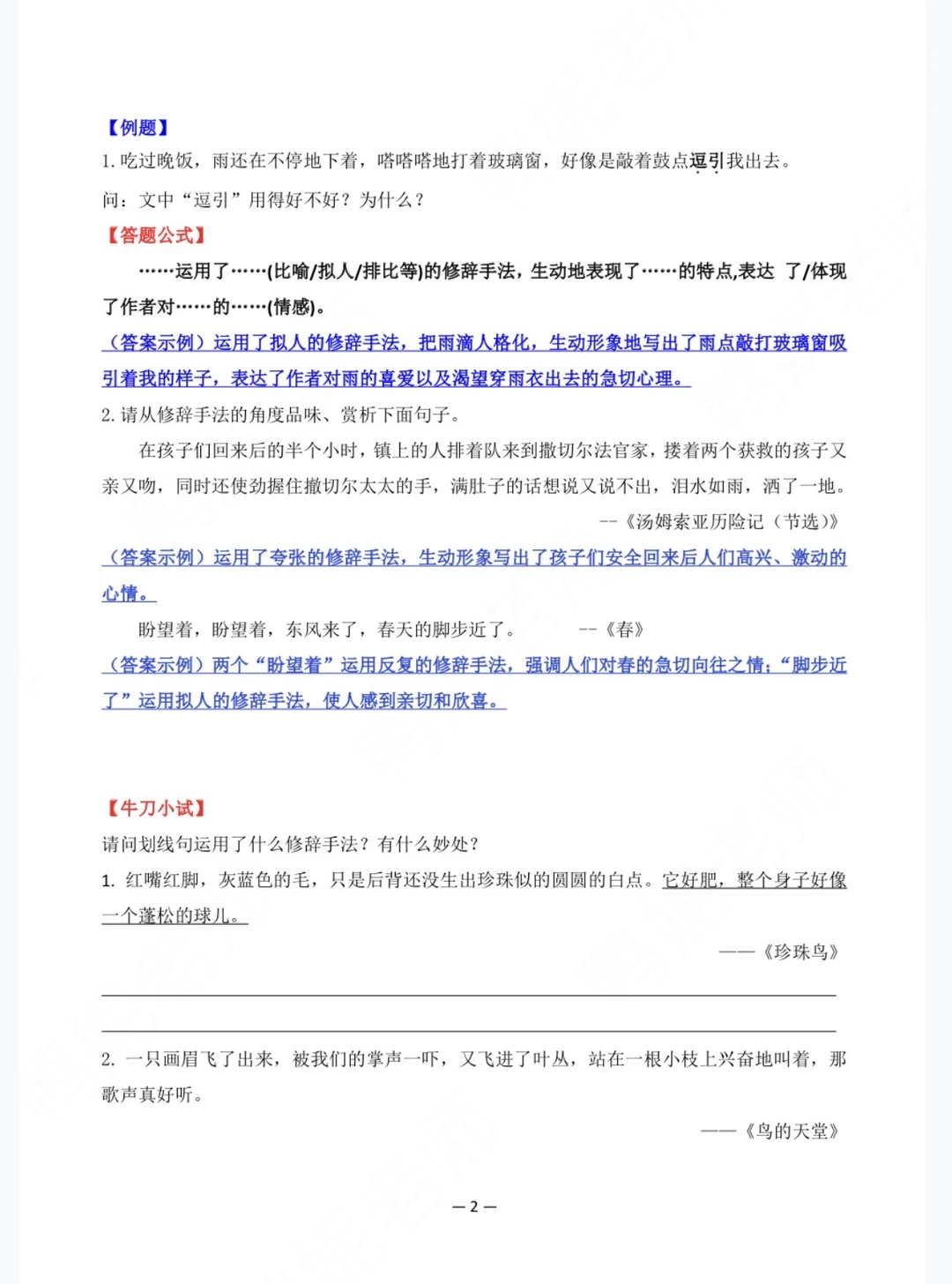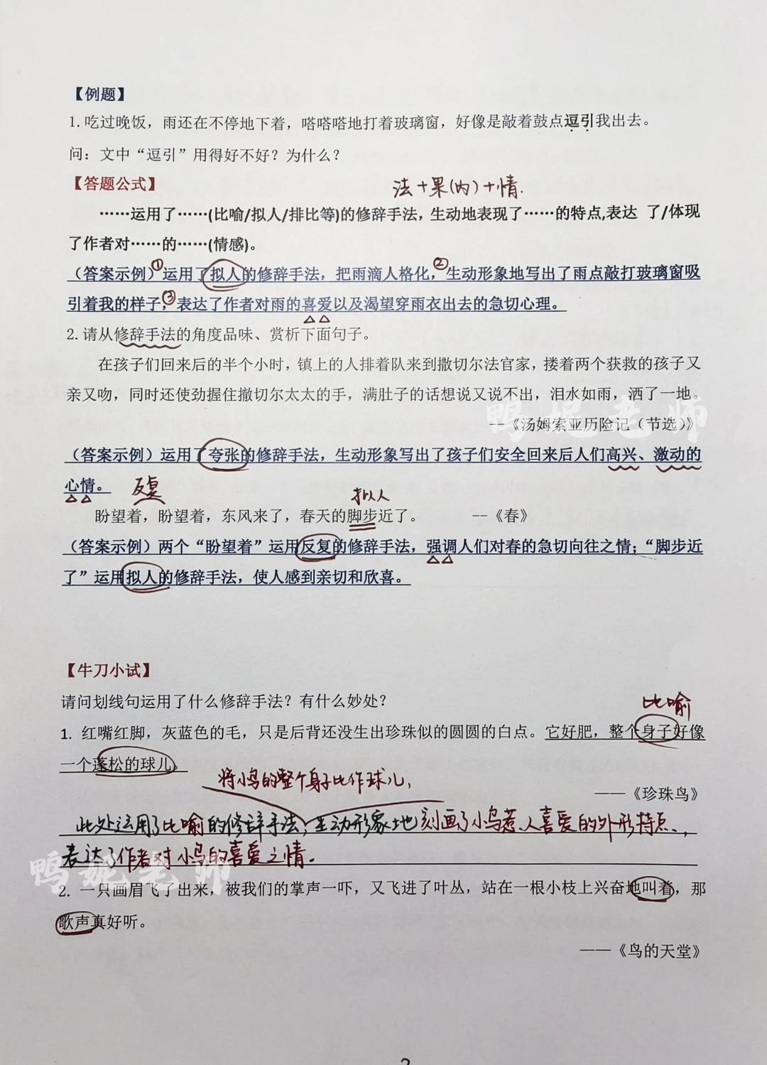 修辞手法的赏析从小学开始一直贯穿到初中乃至高中,是阅读理解题型中的重中之重!