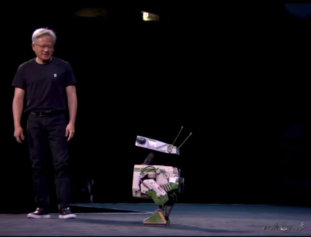 黄仁勋展示了他的“瓦力”机器人,这个小“瓦力”走起路来像一只小鸭子,萌萌的挺好玩的。