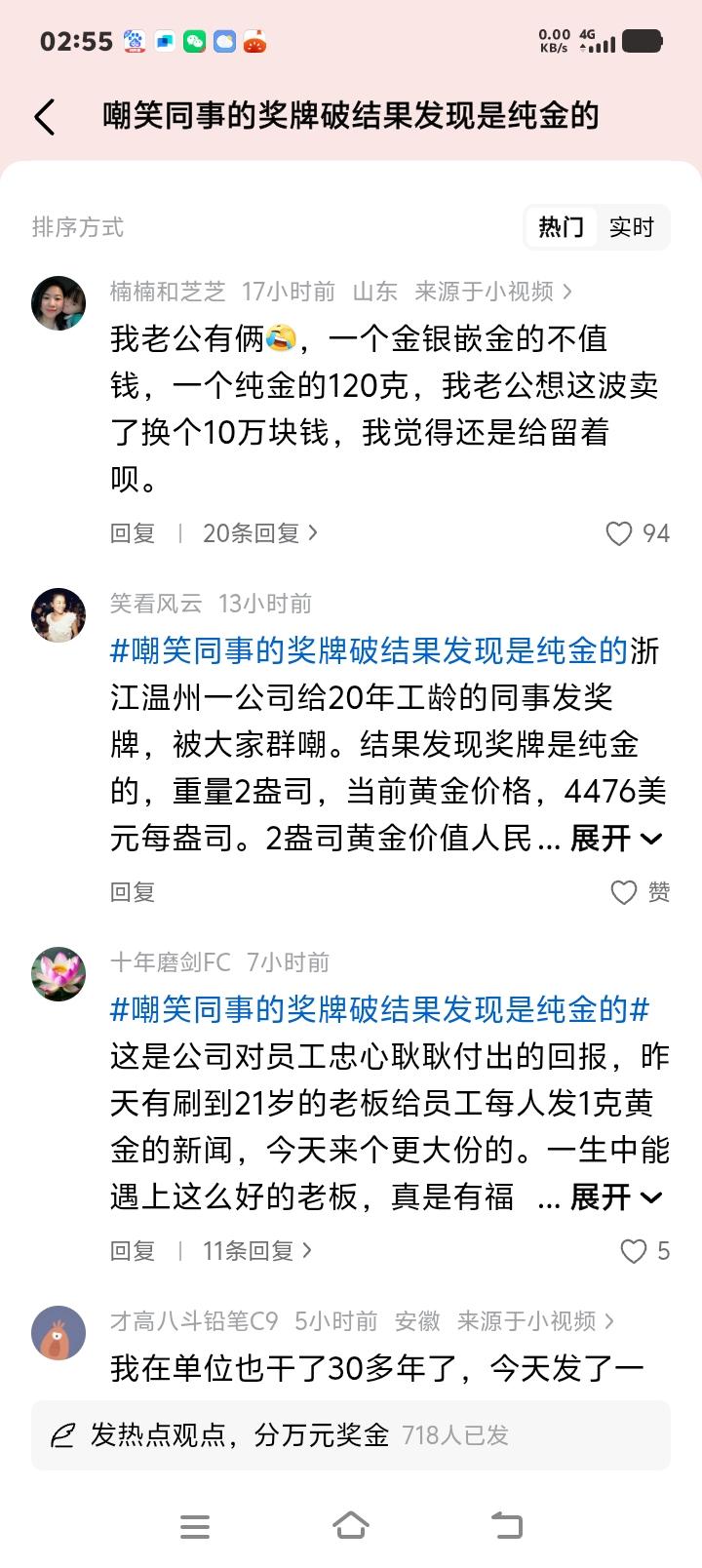 温州这家公司太“壕”横!员工嘲笑同事20年工龄“破奖牌”,结果被证书打脸:竟是60多克纯金,一块值6万! 一块看似普通的工龄奖牌,竟在年会上掀起轩然大波。浙江温州一家上市企业,为满20年工龄的员工颁发纪念奖牌。有年轻同事初见时,觉得其貌不扬,甚至私下调侃“这牌子是不是放旧了”。谁料,随奖牌附带的证书赫然写着:材质纯金,成色99.9%,重量62.2克。按当日金价折算,单块价值超过六万元人民币。嘲笑声瞬间化作尴尬与羡慕,这一幕被传到网上,迅速引爆热搜。 这并非偶然的慷慨,而是企业延续多年的传统。在冠盛汽车零部件集团的年会上,工龄满二十年的员工会被逐一请上台。他们接过沉甸甸的奖牌和一束鲜花,身后大屏幕同步播放着他们的姓名、部门和照片。仪式感直接拉满。据悉,今年共有47位员工获此殊荣,这意味着公司为此付出的实物黄金总价值已近三百万元。 网友们的评论瞬间炸开了锅。最高赞的留言写道:“我们单位满十年,公司就开始想方设法‘优化’你了,超过十五年简直是‘眼中钉’。” 这条评论道出了无数打工人的辛酸。对比之下,这家温州企业的做法,宛如一股清流。它没有用虚头巴脑的“精神表彰”,而是用最保值的硬通货,实实在在地丈量了员工二十年的光阴与忠诚。 黄金奖牌背后,折射出一种久违的价值认同。在当今职场, “35岁危机”、“工龄越长越被动”的焦虑无处不在。许多企业更倾向于雇佣更年轻、成本更低的员工,而对奉献了青春的老员工缺乏足够的尊重与回馈。这块金牌,因此超越了物质本身,成为了一种象征——它告诉所有人,长期的坚守与付出,值得被看见、被珍视、被赋予沉甸甸的份量。 从人性角度看,最初的“嘲笑”与后来的“震惊”,恰恰暴露了我们常犯的“以貌取物”甚至“以貌取人”的毛病。那块未经炫耀的金牌,就像许多默默深耕的老员工,外表朴实无华,内里却蕴藏着真金白银的价值。这个故事狠狠给了我们一个教训:在轻易下判断之前,最好先看清本质。 对于获奖员工而言,这块金牌的意义远超奖金。有家属在评论区透露,家人想把金牌变现改善生活,而自己则想珍藏传承。它不仅是财务上的补贴,更是一份可以握在手中的荣誉和家族记忆。在通胀与不确定性并存的时代,黄金的稳定价值,让这份奖励显得格外务实和暖心。 企业的这一行为,也产生了巨大的品牌效应。无数网友在评论区呐喊“还招人吗”,并非戏言。这比任何华丽的招聘广告都更具冲击力。它向社会传递出明确信号:这是一家珍视人才、懂得感恩、愿意与员工共享发展成果的企业。这种正向的雇主形象,是其最宝贵的无形资产。 当然,也有理性声音指出,并非所有公司都有实力如此“豪横”。但核心并不在于奖牌是否纯金,而在于企业是否有心。一个刻有名字的定制纪念品,一次真诚的公开感谢,同样能温暖人心。关键是要让员工感到,他们的岁月没有被辜负,他们的付出被铭记在心。 一块金牌,照见了职场生态的参差,也触动了公众关于忠诚、价值与尊重的集体思考。它像一面镜子,让每个人都在其中看到了自己的处境与渴望。当嘲笑转为羡慕,当冷漠对比温情,我们真正期待的,或许是那份对“人”本身最基本的尊重与肯定,在任何地方都能闪闪发光。 (来源:综合封面新闻、大象新闻及各大社交平台网友热议) 职场冷暖 忠诚的价值