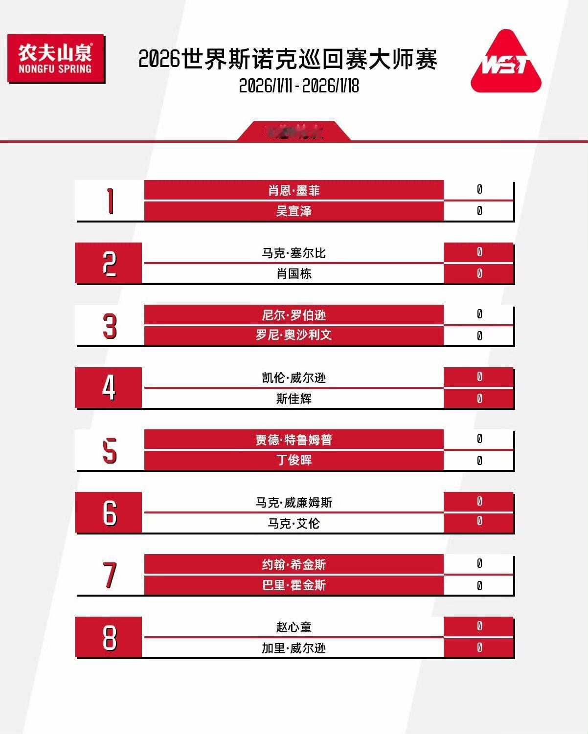 2026年斯诺克大师赛将于1月11日至18日在伦敦亚历山德拉宫开赛,中国球员5人参赛创历史新高,赵心童冲击三大赛满贯成为焦点。首轮大概率全军覆没? 决赛前都是11局6胜制,决赛19局10胜制。大师赛奖金分布: 冠军: £350,000 亚军: £140,000 四强: £75,000 八强: £40,000 16强: £25,000 单杆最高分奖: £15,000