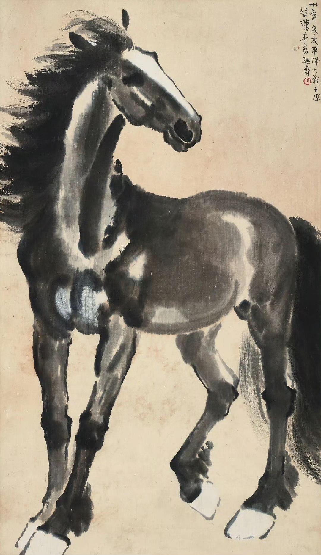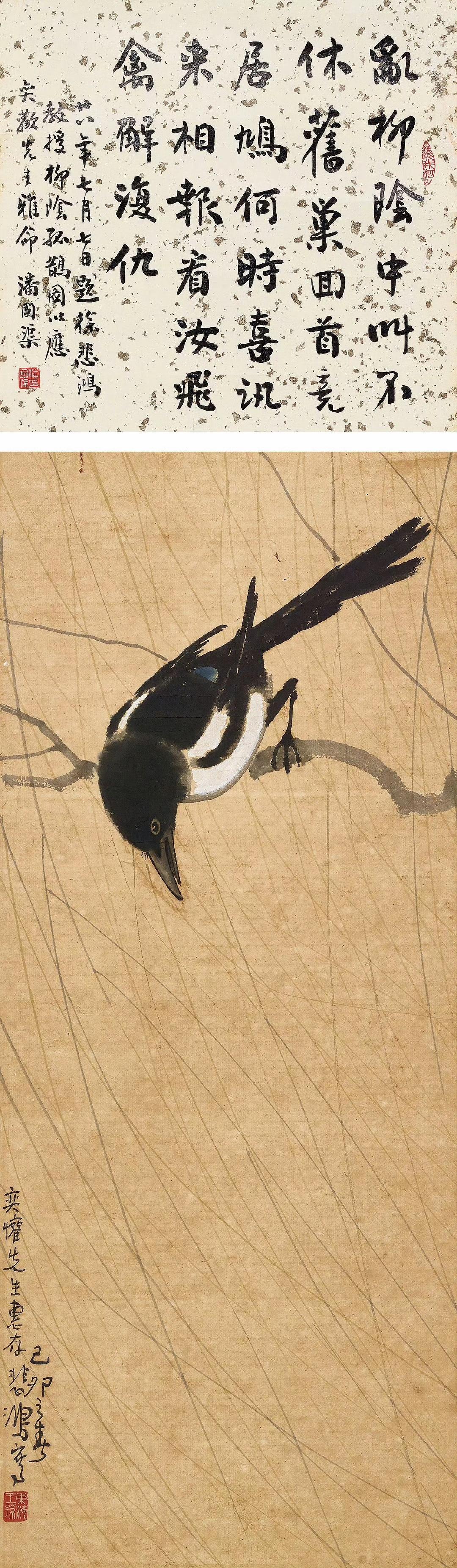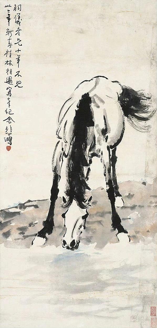 徐悲鸿 小画六幅欣赏 【柳丝喜鹊】【东郊瘦马】【立马】 【饮水思源】【竹林双鸡】【雄狮】