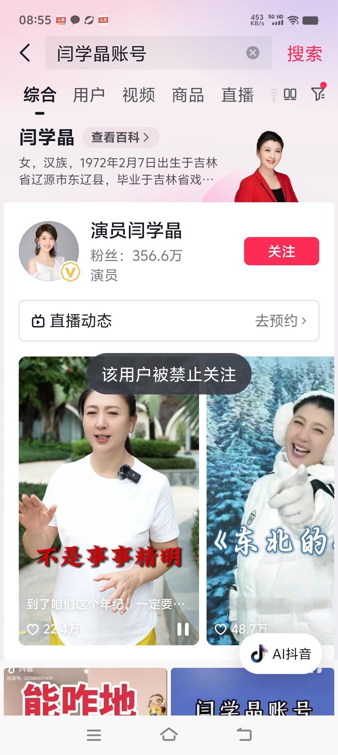 她的账号真的禁止关注了? 刚才刷到是视频,一位男主播说那个说“酸黄瓜”的女演员