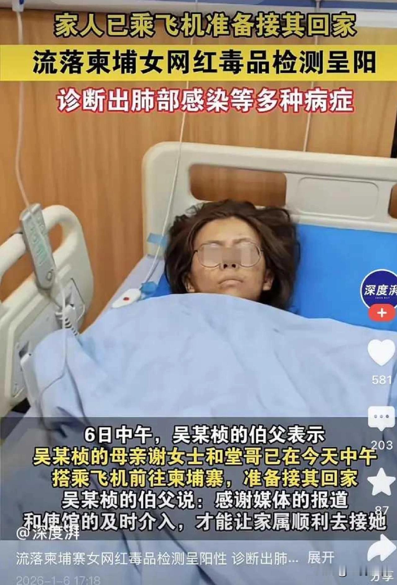 曾经光鲜亮丽的女主播, 沦为异国街头乞丐! 20岁女孩吴某桢流落街头,结局太揪心 一个20岁的福建姑娘,被所谓的“男朋友”以“高薪工作"骗去柬埔寨。 一开始还晒KTV霓虹、新裙子,看着光鲜亮丽。 可没过几个月,视频停更,人直接流落街头。 口红晕到下巴,蹲在尘土里,看着哪还有半点当初的样子? 更让人揪心的是体检结果:肺部感染、胸膜炎,胸腔里还有积液。 毒品检测居然是阳性,冰毒、K粉痕迹都有。 好好的青春,就这么被糟蹋了! 说到底,哪有什么不劳而获的高薪? 那些吹得天花乱坠的海外工作,背后全是陷阱。 黑手用毒品控制人,用欲望套牢人,等你反应过来,早就深陷泥潭。 还好领事馆及时介入,家人也赶去接她了。 但接回来的,是一身病痛和被毁掉的年华。 普通家庭哪禁得住这么折腾? 真心劝大家:海外不是遍地黄金,快钱背后全是荆棘。 踏实过日子,比啥都强。 别让一时糊涂,毁了自己一辈子! 也希望这样的悲剧,再也别发生了。