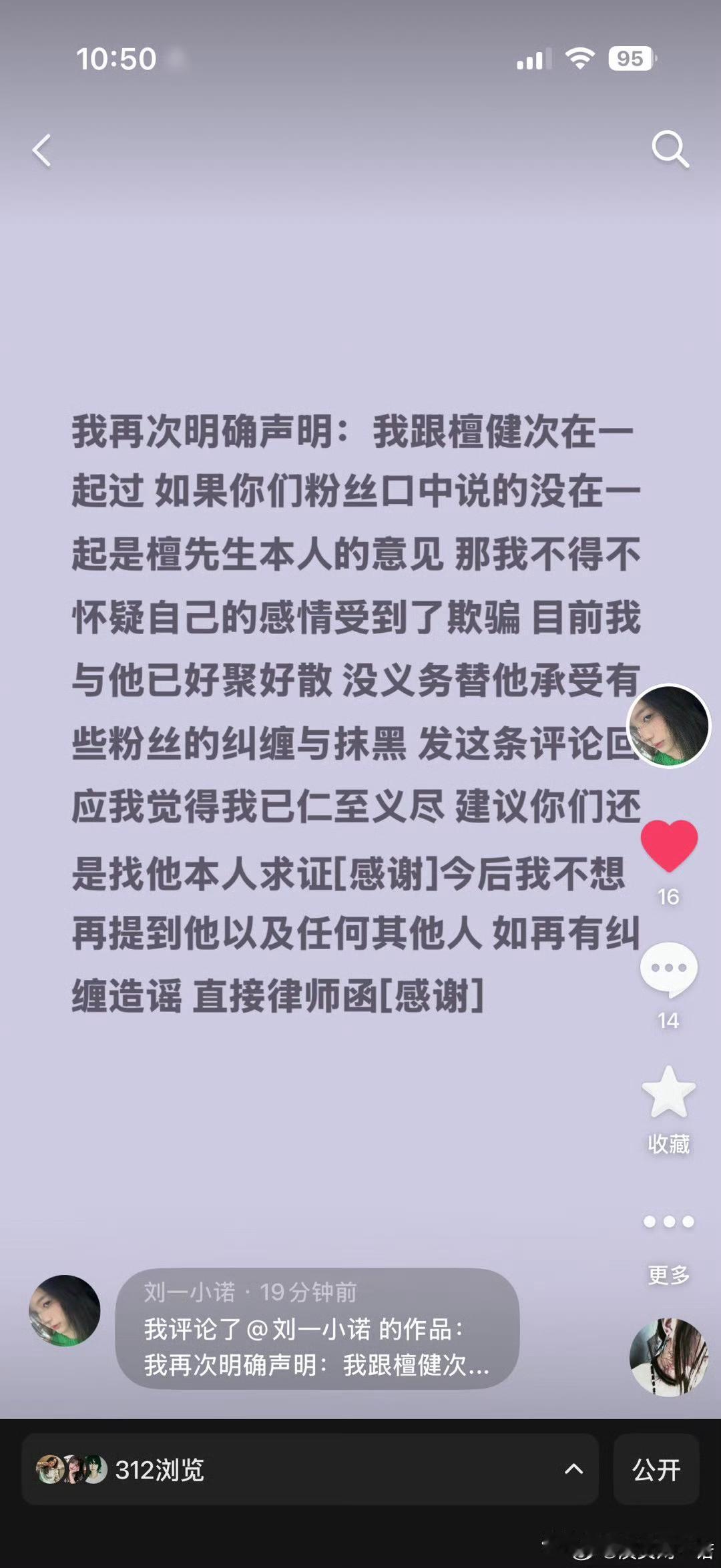 没义务替檀健次承受抹黑为啥不大大方方的有担当一点回应一下呢 ?一个说已分手,一个说现在单身,那还有什么好掰扯的啊?真看不懂。