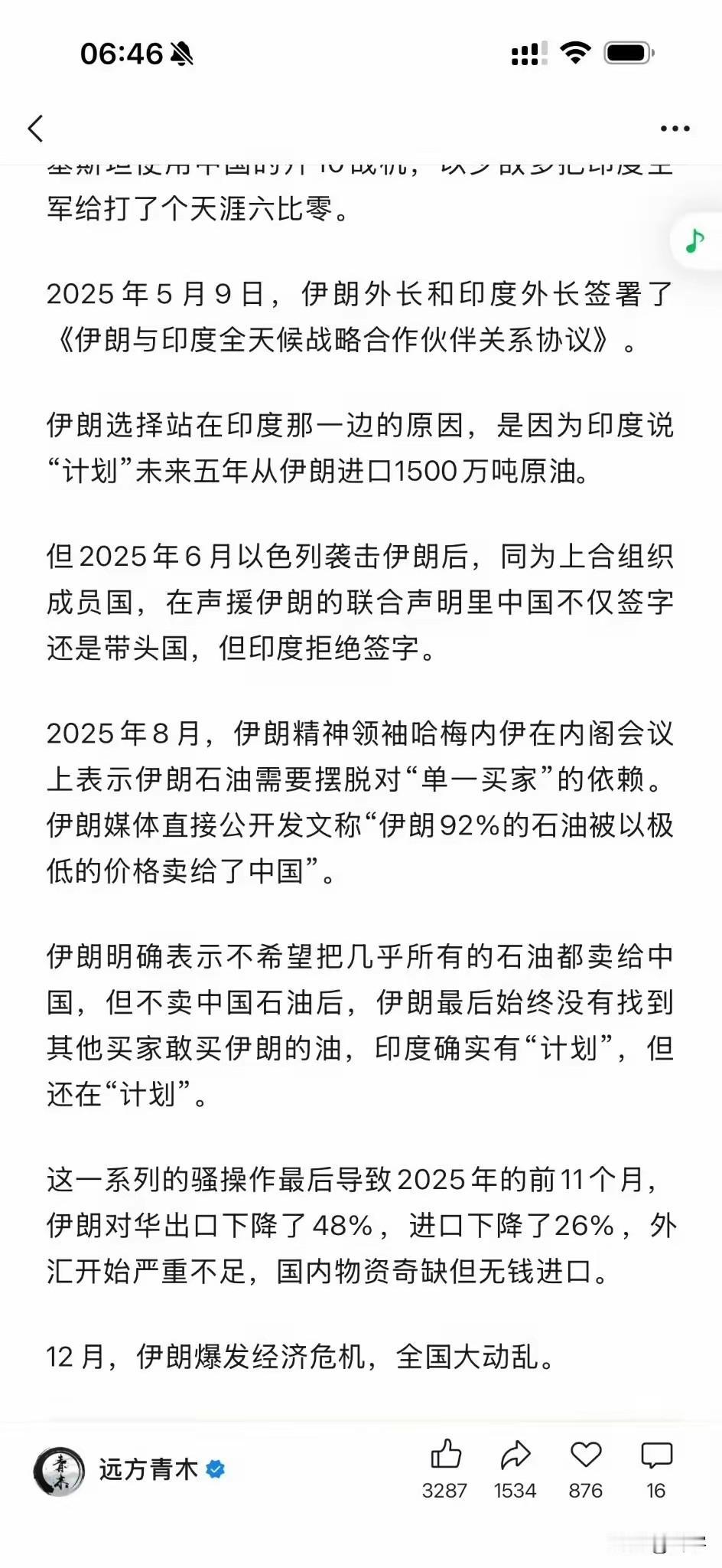 伊朗快速衰落的原因找到了,竟然是想将卖给龙国的石油留下一些卖给印度给,他们在2025年印巴5.7空战的关键时刻站队印度,以为向印度雪中送炭会得到印度的厚报,让他们的石油找到新买家,没有想到的是,5.7空战失败后的印度怂到了家,在特朗普的威下,连俄罗斯石油都不敢买了,怎么敢买伊朗的石油?于是,伊朗便在等待的过程中迎来了经济崩溃,酿成了今日之苦果(详情见图二)。这就是伊朗,他们的悲剧在选择印度那一刻就注定了,真不怪俄罗斯不拉他,真的是拉不动,小九九太多了!