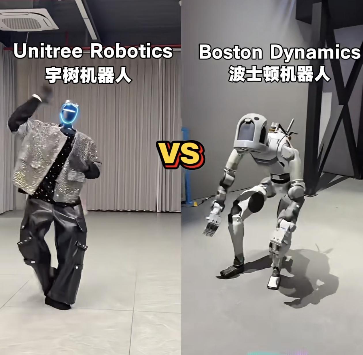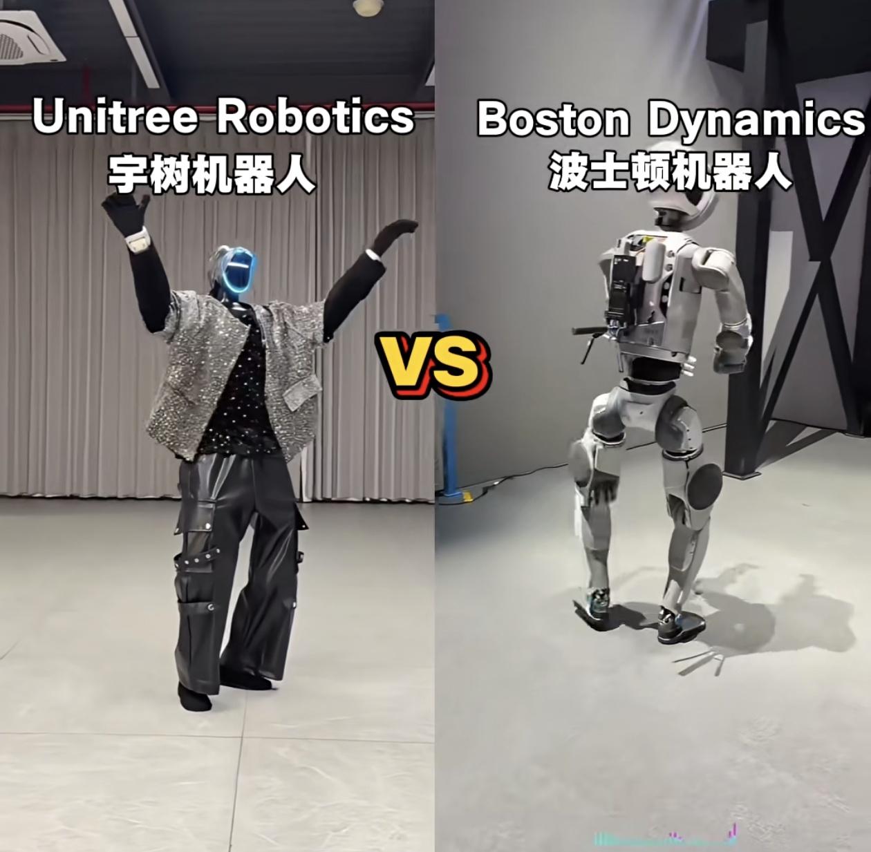 宇树VS波士顿机器人斗舞!国产机器人这波操作太炸了 谁能想到机器人跳起舞来比人还丝滑?宇树和波士顿动力的人形机器人同台斗舞,直接把科技感拉满! 左边宇树机器人一身闪亮外套,动作卡点精准,挥手、扭胯的节奏感堪称“机器人舞王”;右边波士顿机器人则是硬核工业风,每一个动作都透着机械的力量感,一柔一刚对比超强烈,身体不分前面和后面,所以站起来后倒退不用转身,直接朝后走。 更让人惊喜的是,国产宇树机器人在肢体协调性和动作流畅度上完全不落下风,甚至在舞蹈的表现力上多了几分灵动。从四足机器人到人形机器人的突破,国产科技真的越来越能打了! 这波机器人斗舞,你觉得谁更胜一筹?评论区说说你的看法~