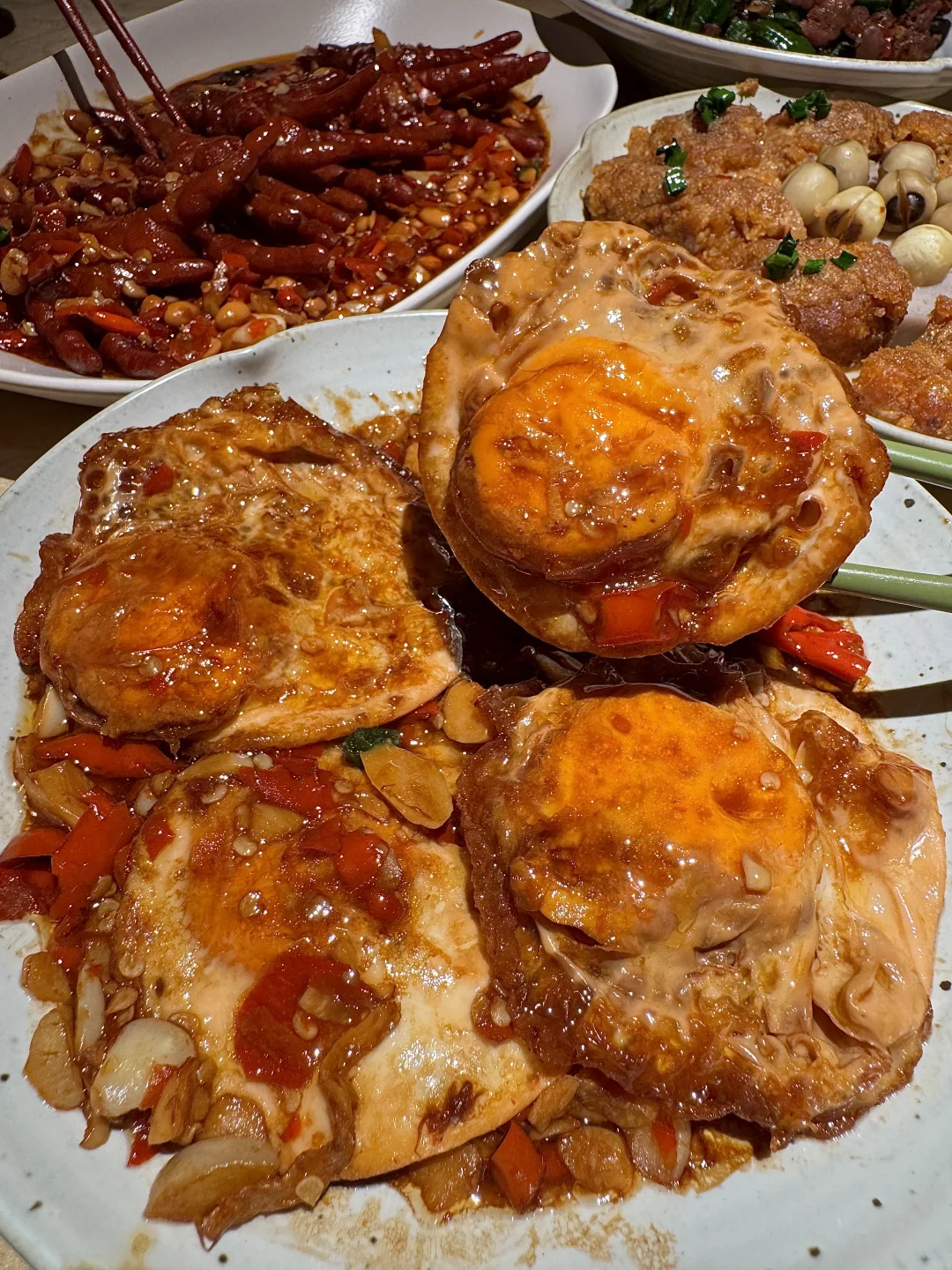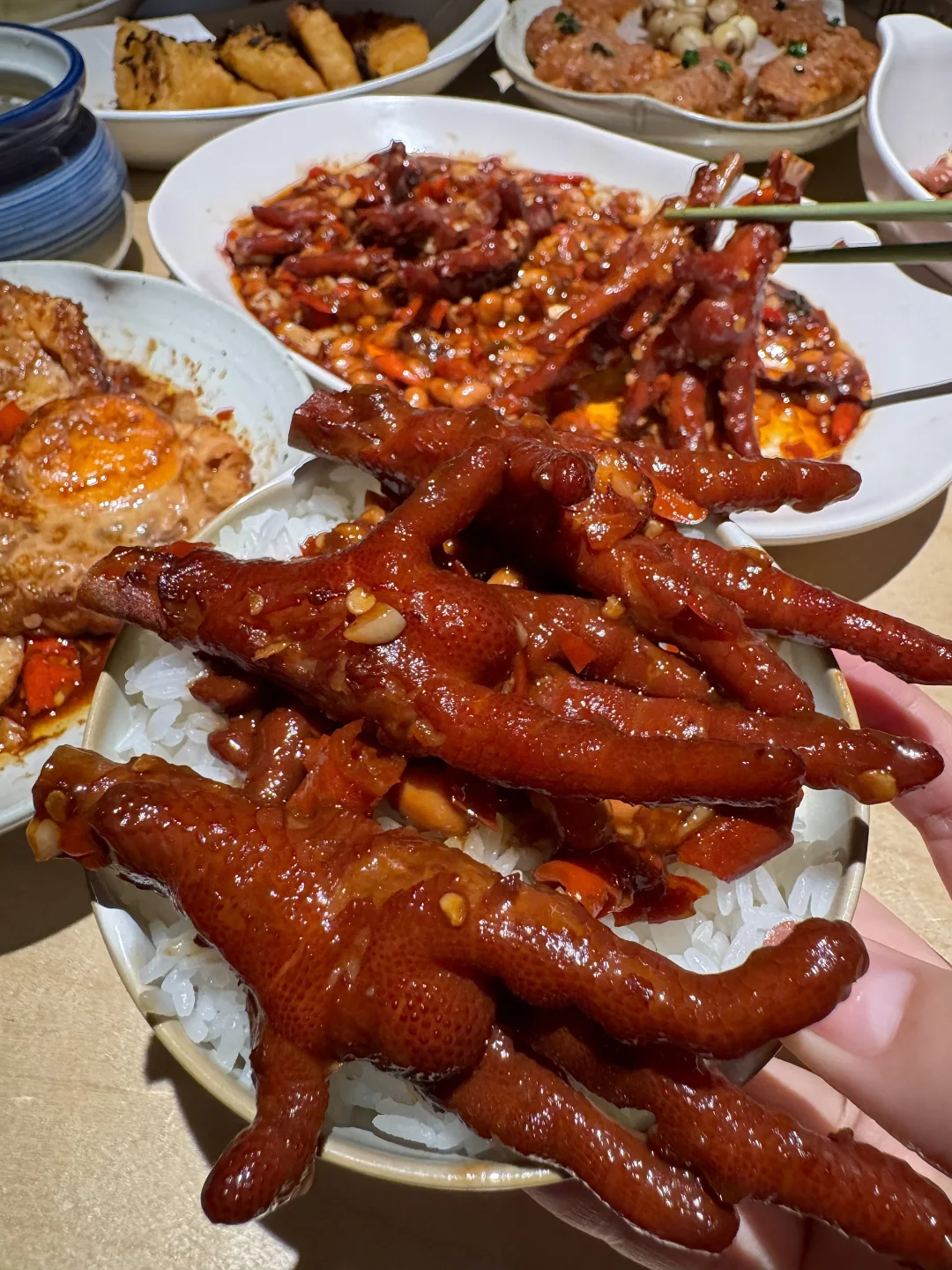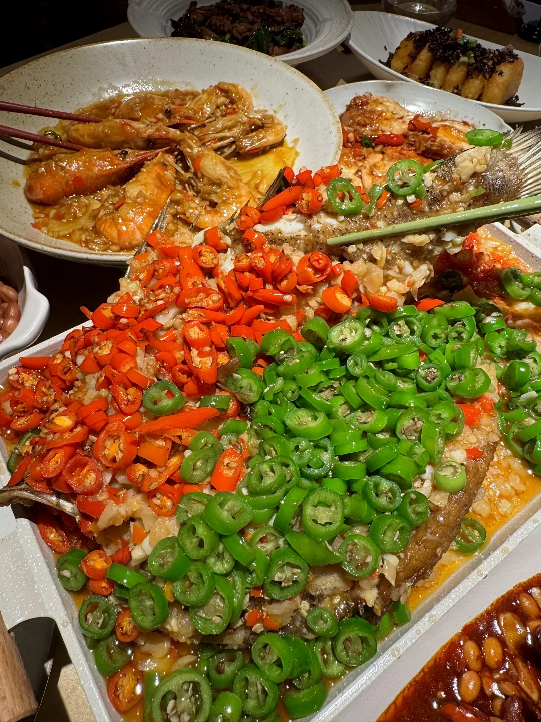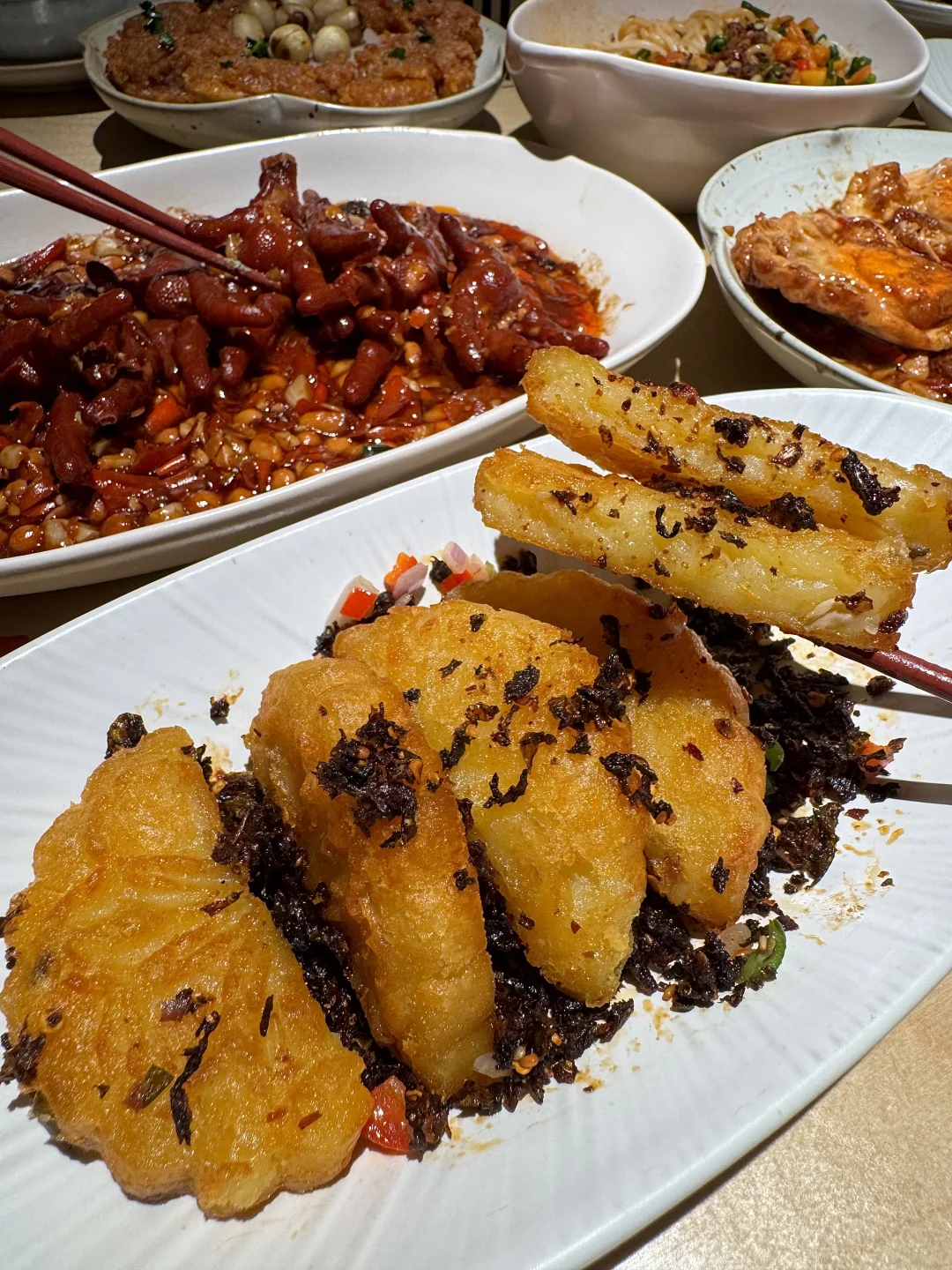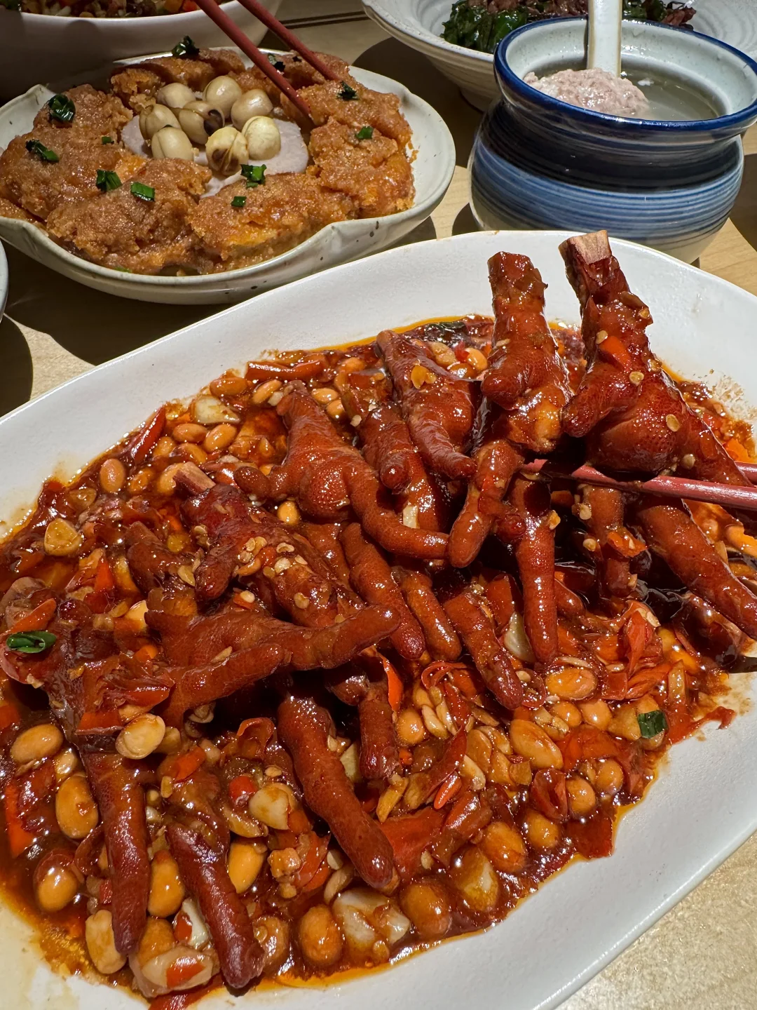 终于不用去上海排队了!!嘉里中心也开了野山桐,木质调氛围好好,江西菜辣辣的吼吼吃!!吃辣厉害的可以选择江西辣🌶️🌶️🌶️🌶️太得劲了!! ✔️黄豆烧鸡爪 软糯糯肥肥的鸡爪,chao入味!!酱香➕咸甜➕辣,好上头!! ✔️招牌凤梨罗氏虾hinhin肥美!!豫章双椒脆皮鱼分量可足了,双色辣椒铺的满满的,好嫩好香!!家烧荷包蛋、老南昌拌粉、老南昌白糖糕…好多南昌特色,好吃的不踩雷!!!