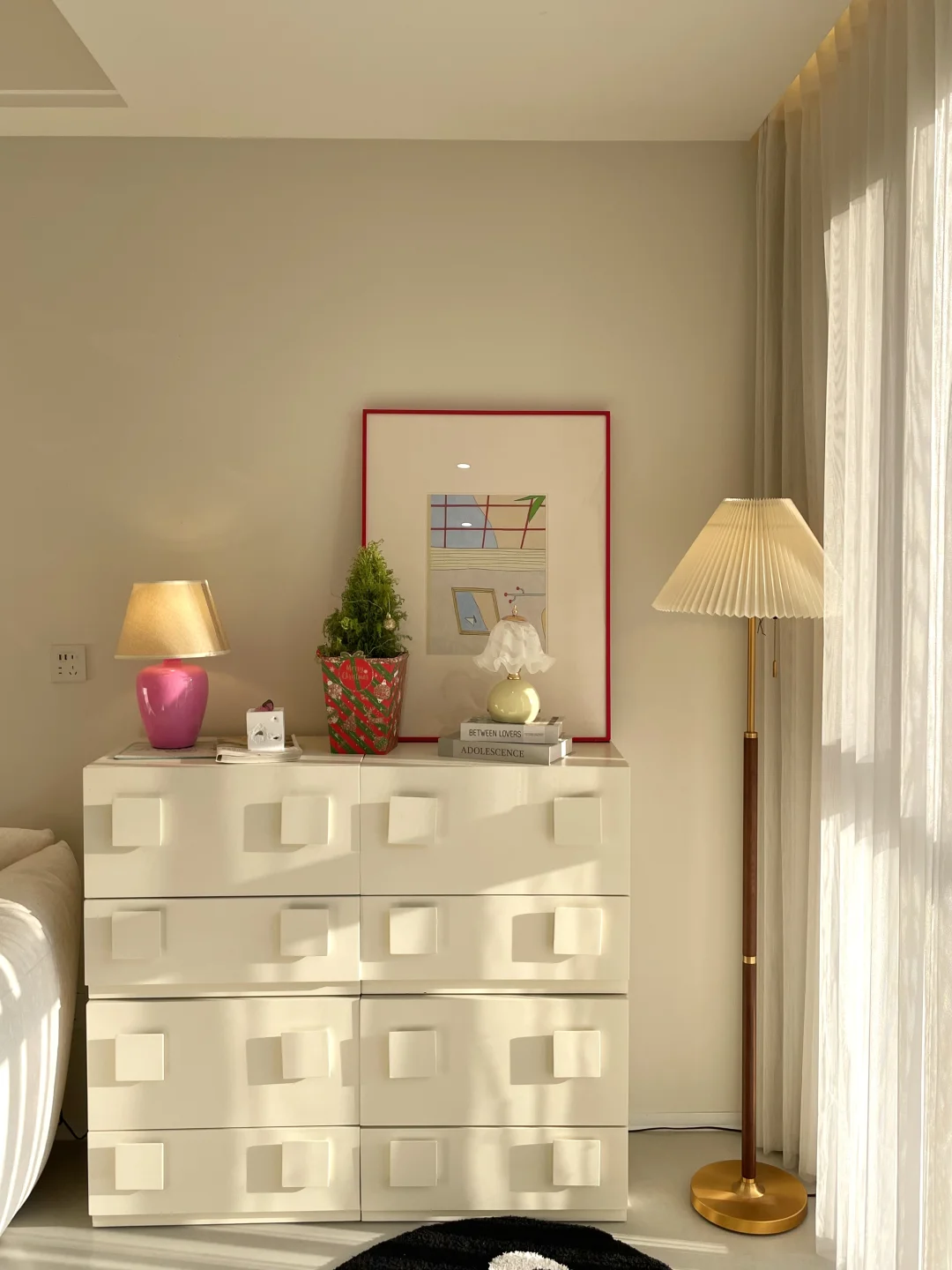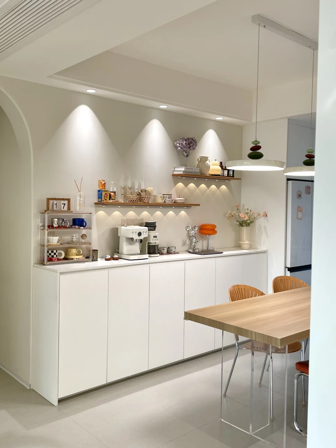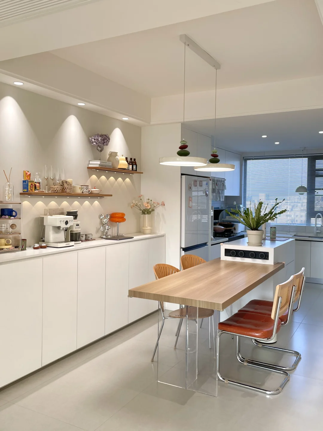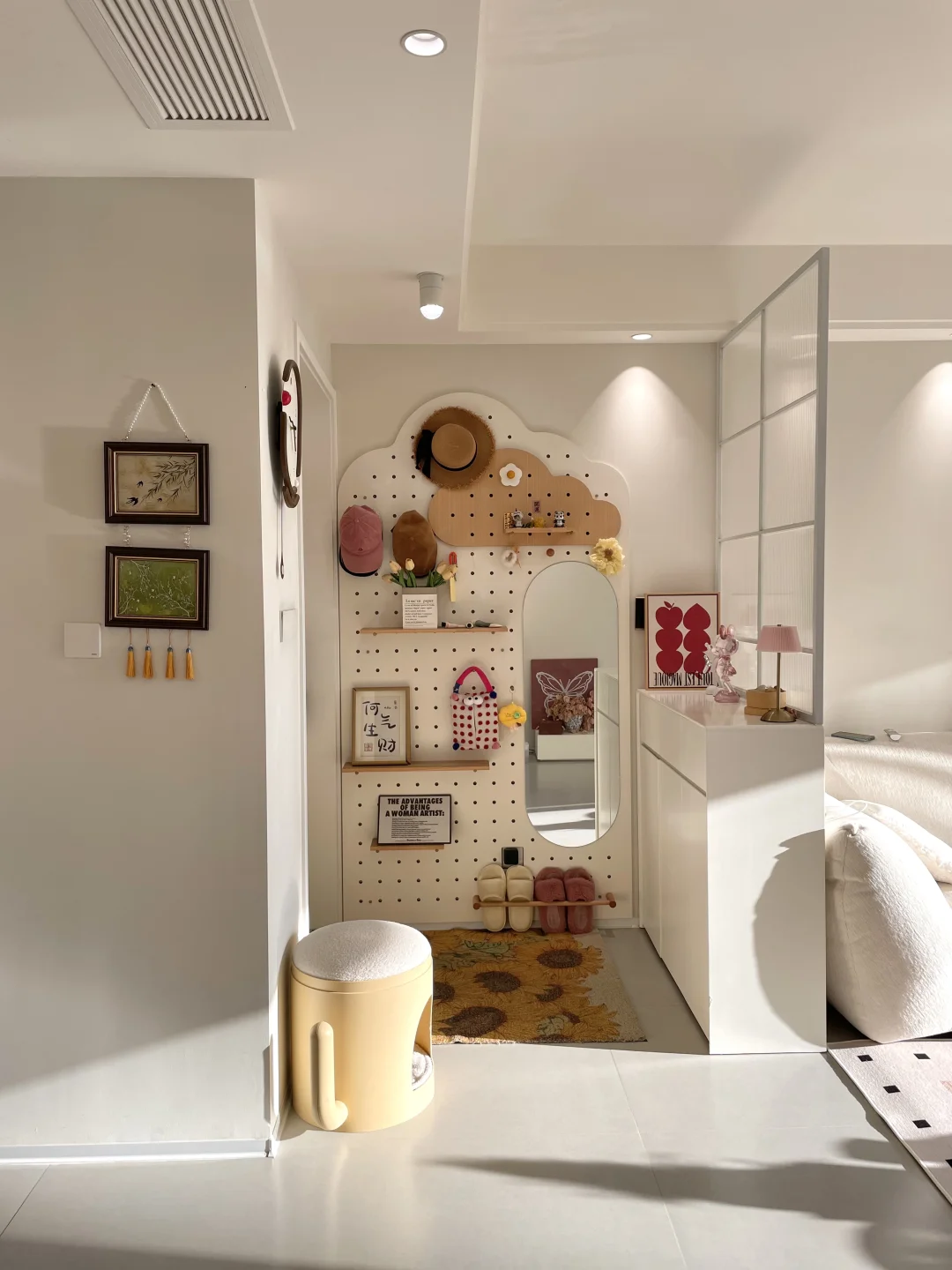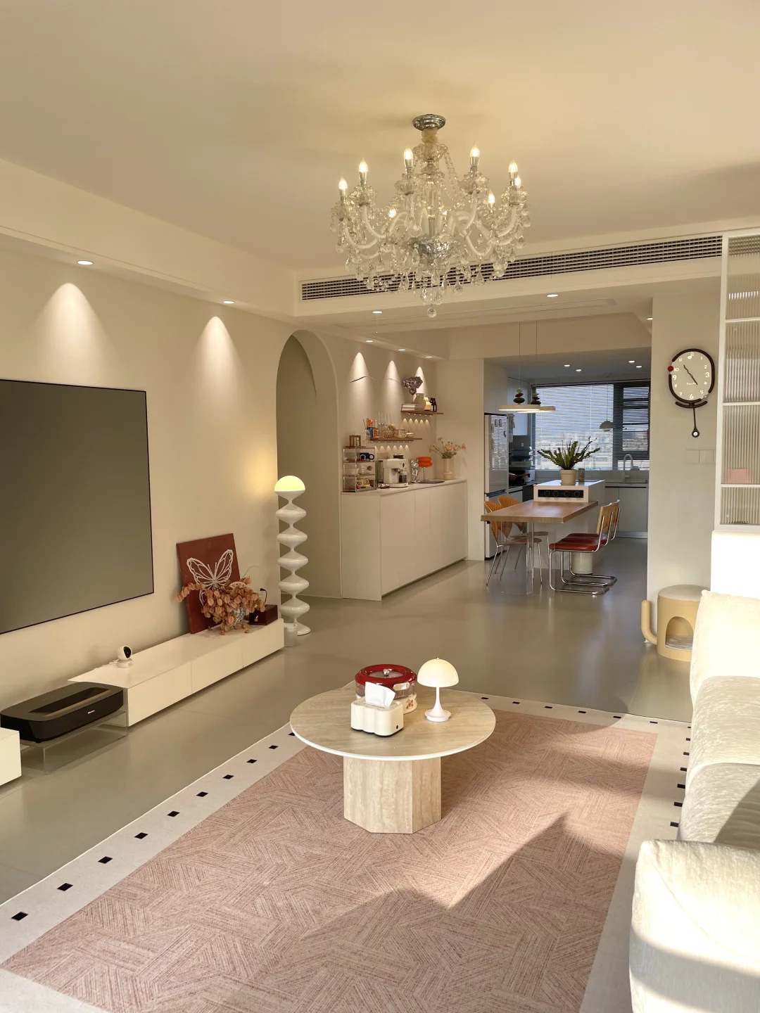 我家建面128,套内104平 硬装上通铺浅色乳胶漆,客餐厅通铺浅灰色柔光砖 简单的影响,全靠软装搭配
