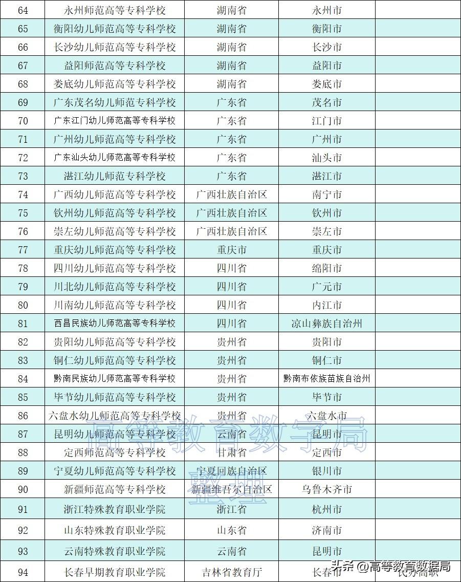 株洲师范高等专科学校发布发布风险评估公示,拟与湖南汽车工程职业大学合并,全国还有94所同类的师范类专科院校。 湖南之所以如此着急,是因为湖南是师范类专科院校数量最多的省份,达到了10所。此前,衡阳幼儿师范高等专科学校转型计量职业技术学院,湘南幼儿师范高等专科学校转型文旅和科技职业院校,长沙幼儿师范高等专科学校也在向综合性人才培养转型。 94所师范类专科院校分布在除北京、上海、天津三大直辖市以及陕西、西藏、海南以外的25个省份。 师范 大学 专科