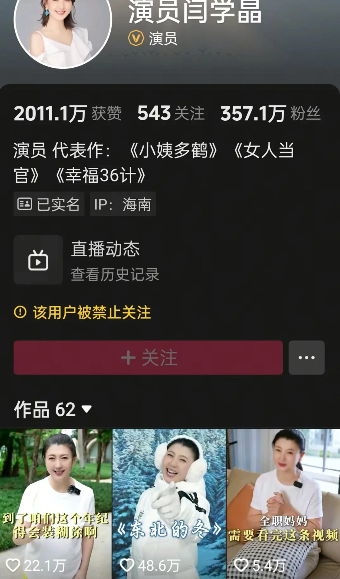 闫学晶怎么也想不到,自己唠唠家常竟然被警告了,第一步是禁止关注,下一步是不是就封