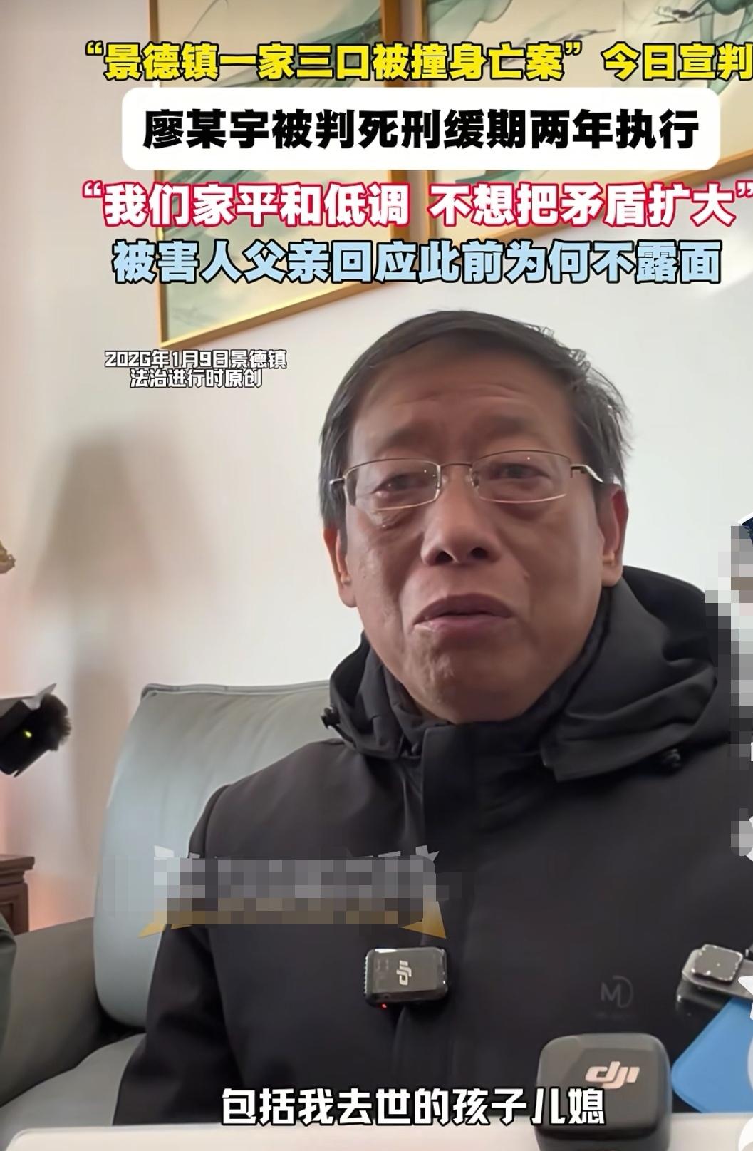 景德镇一家三口被撞案的胡爸爸首次露面,他说:以前之所以没有露面接受采访,只是不想把矛盾扩大化,也不想 刺激到对方!这样的判决让他再也坐不住了!胡爸爸说:缓刑的情况下,他应该是坐牢15年,再加2年17年,也就是说他出狱的时候也才39岁!能重新生活。 但他们老两口60多了,独子独孙,未来一片灰暗。儿媳妇善良,进门才1072天就遭此横祸,胡爸爸满心愧疚。 这样的判决,胡爸爸难以接受,觉得对自家太不公平。一句“孤老终生”,道出无尽悲苦。法律判决,不仅关乎罪行惩处,更要给受害者家庭慰藉。大家觉得,怎样的判决才更能让受害者家属感受到公平正义呢?景德镇肇事案 景德镇撞人事件 景德镇车祸 景德镇被撞案