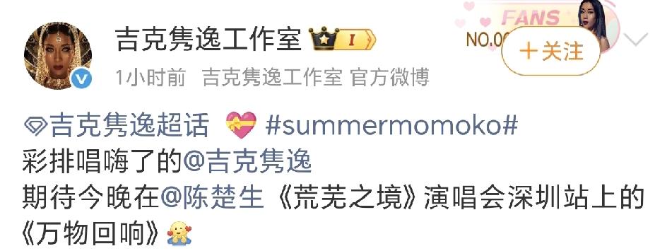 陈楚生深圳荒芜之境演唱会嘉宾是吉克隽逸啊,好惊喜! 没想到这个好消息竟然是吉克隽
