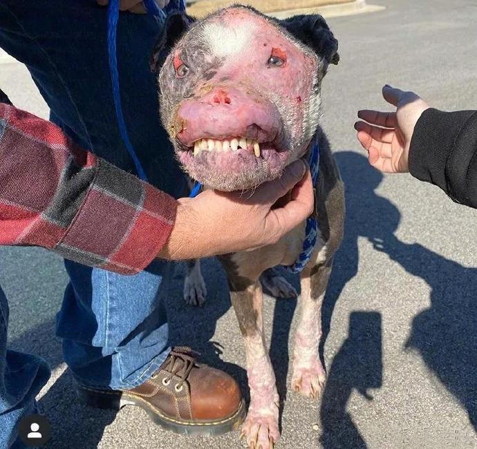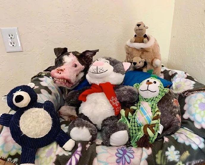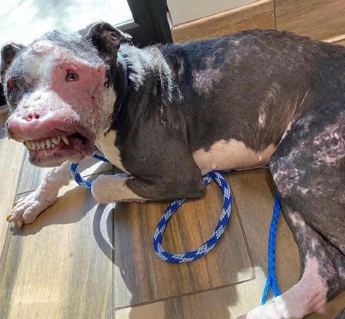 这只狗子被邻居发现时已经奄奄一息,脸部及身体烧伤,找不到狗主人的任何信息。这位邻居把它发到了网上,想碰碰运气,实在不行只能安乐死。 结果被一位救助站看到,当天就赶过去带菲尼克斯去了医院治疗。初步判断是一只比特犬,经过一段时间治疗后已经恢复的差不多了,只是被烧伤的皮肤长不好了。 令人意外的是,即使有过这么不好的回忆,它对人还是非常友善,救助者表示,它不但喜欢亲近人,而且通过训练已经学会了不少动作,很聪明。