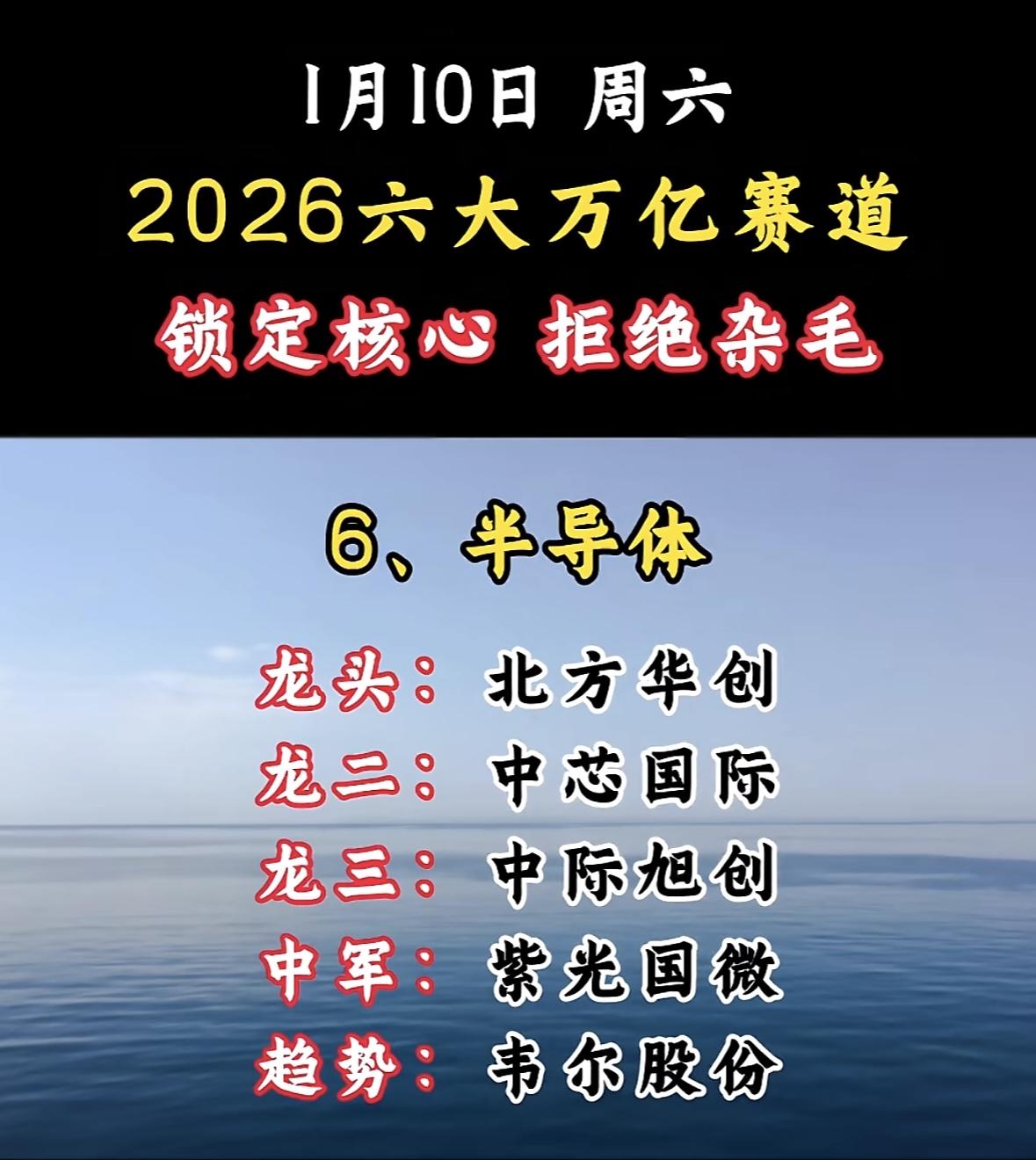 "2026六大万亿赛道聚焦商业航天,龙头航天发展领衔,金风科技、雷科防务紧随,中国卫星稳居中军,鲁信创投显趋势。" 2026年半导体赛道龙头企业揭晓,锁定核心,拒绝杂毛! "六大万亿赛道聚焦龙头:航天发展领跑商业航天,金风科技、雷科防务紧随,中国卫星稳健布局。"