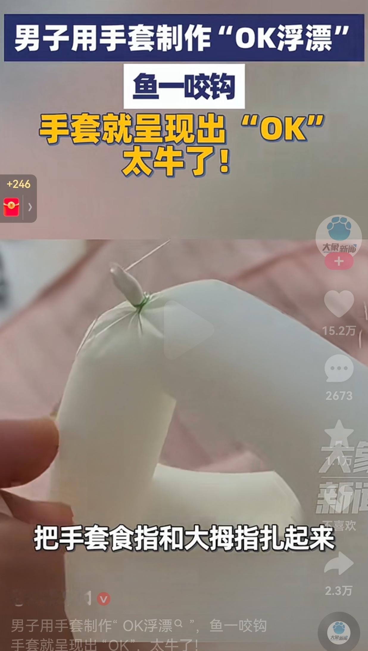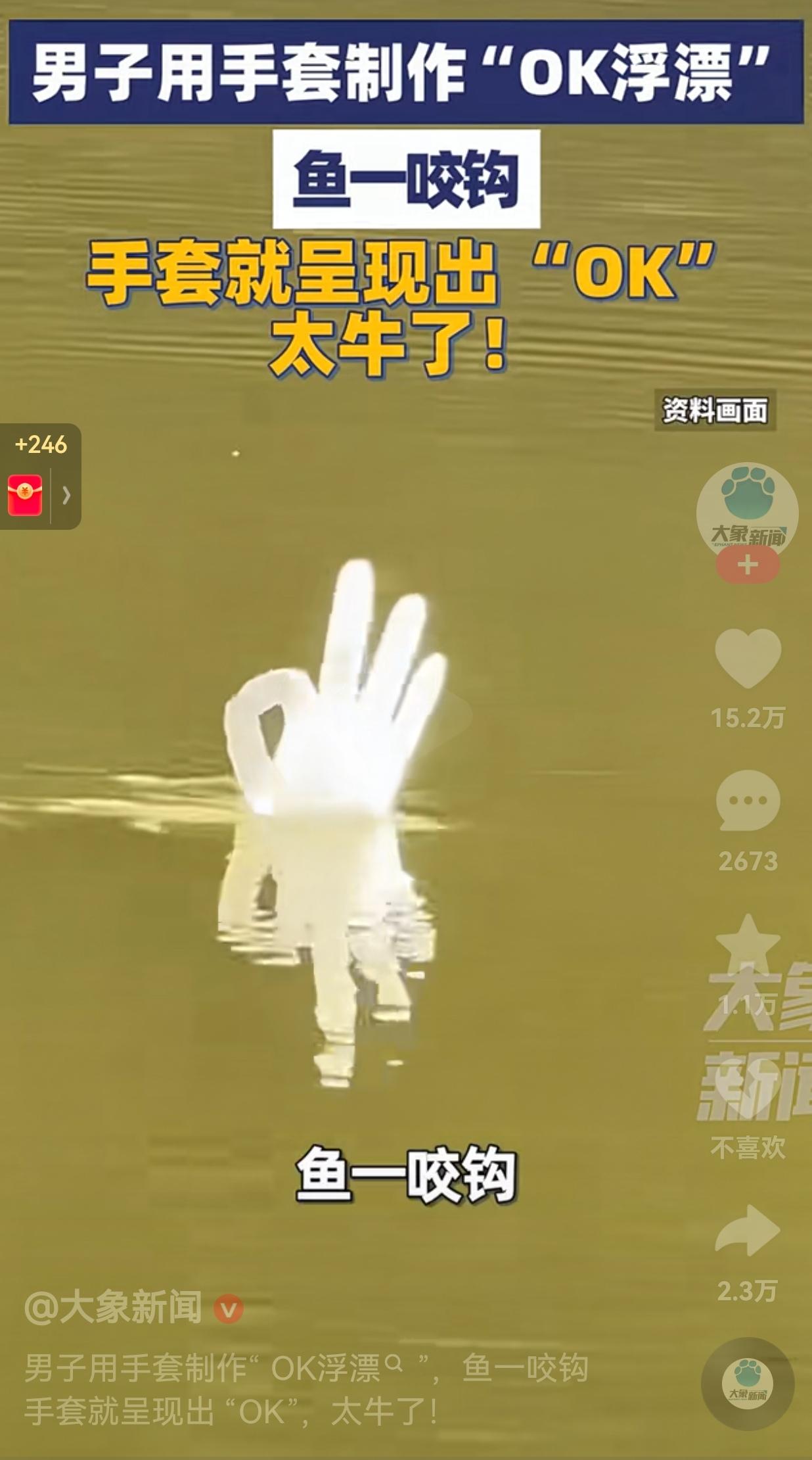 果然,高手在民间!云南一男子用手套制作“OK浮漂”,只要鱼一咬钩就呈现出“OK"的形状,这下再也不用紧盯浮漂了。 据男子讲述,制作方法特别简单,就是把平时不用的手套食指和大拇指扎起来,充气后做成浮漂的样子,这样一个浮漂就制作好了。 钓鱼的时候,只要看水里的手套有没有摆出“OK”手势,就知道有没有鱼上钩。 视频中,白色的手套在水面上漂浮,鱼一咬钩瞬间变成“OK”造型。 网友看到后评论说:“鱼:我咬钩了,给你比个OK的手势。” 也有的网友调侃:“这浮漂太显眼,估计鱼都不敢咬了。” 还有的人感叹:“高手在民间,我怎么就想不到”。 其实我们不是想不到,而是少了那份爱折腾的心思。我们都愿意买现成的,谁还会动脑筋想出这种事情呢? 通过这事,也让我明白,生活从不会缺少趣味,缺的是一双善于发现的眼睛和善于思考的大脑。 我想下次去钓鱼的时候,也打算试试这个“OK浮漂”,我不为钓多少鱼,就只为等水里那只手套比出“OK”的瞬间,感受那份属于自己的快乐。 毕竟,生活嘛,不就是要在平淡里找乐子,在闲暇时光寻惊喜吗?