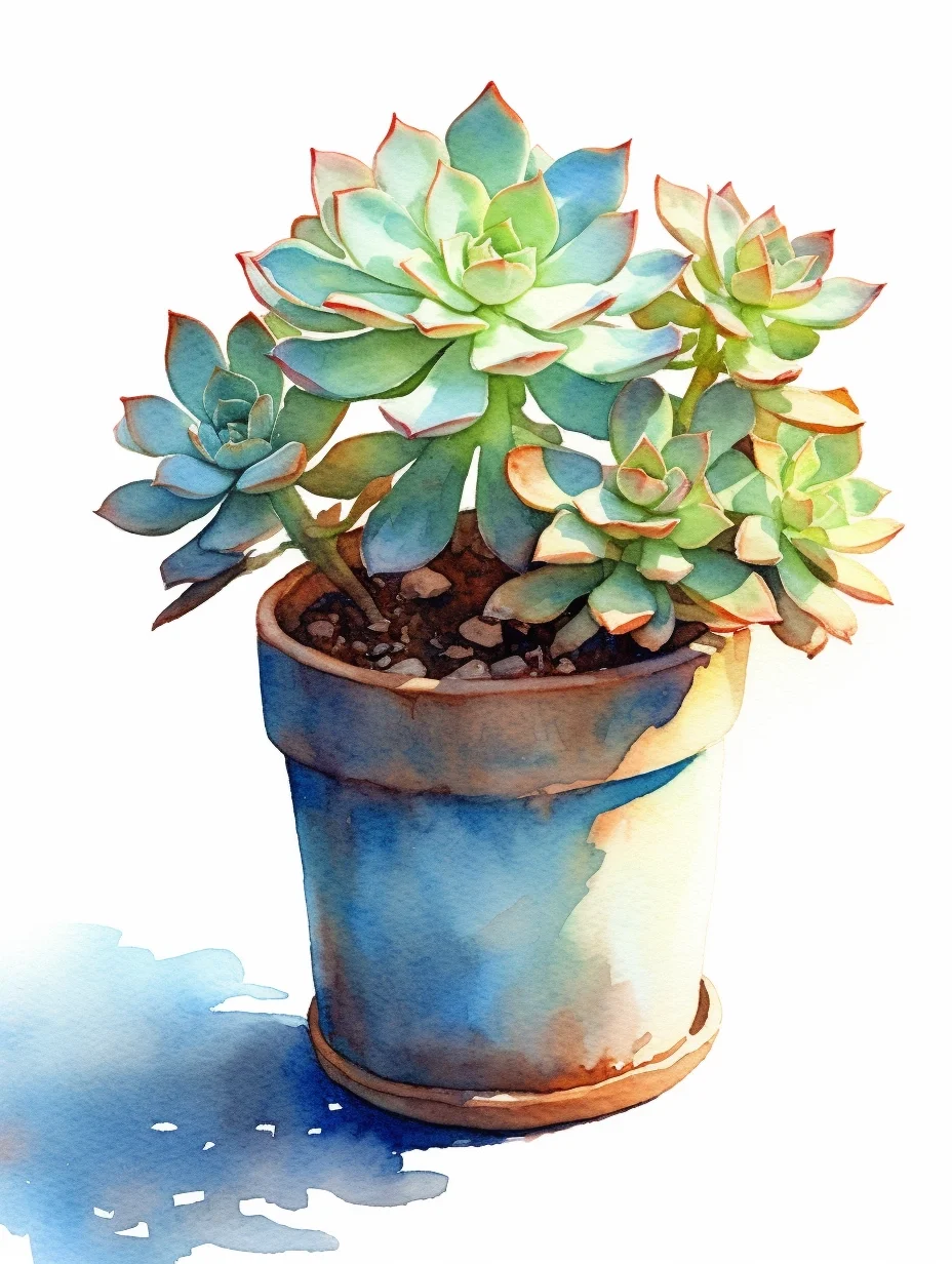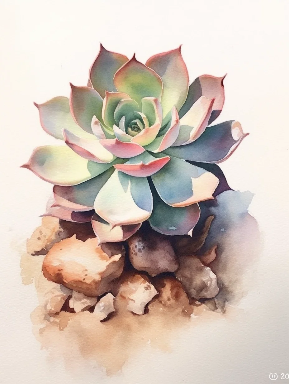 多肉 多肉植物 水彩 Ai绘画 多肉控