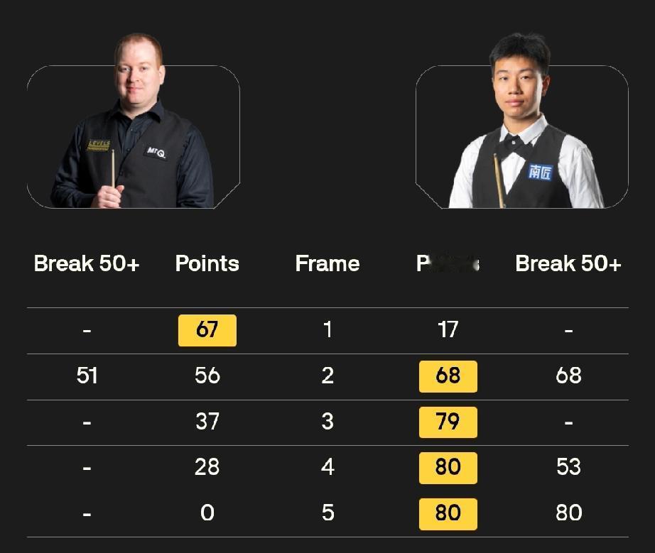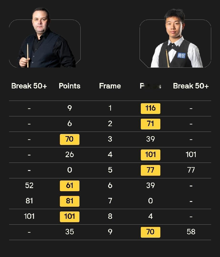 常冰玉、范争一晋级德国大师赛正赛! 高阳晋级德国大师赛、威尔士公开赛正赛! 1月10日,在刚结束的德国大师赛资格赛第二轮的比赛中,高阳、常冰玉、范争一战胜各自对手,晋级正赛。 常冰玉两杆破百4-1击败默罕默德·谢哈布、范争一1杆破百3杆50+4-0击败萨希尔·那亚尔,晋级德国大师赛正赛64强。 值得一提的是高阳,在威尔士公开赛资格赛决胜轮5-4击败斯蒂芬·马奎尔,晋级正赛32强。今天又以4-1的比分击败乔丹·布朗,晋级德国大师赛正赛64强,表现不错,值得表扬!