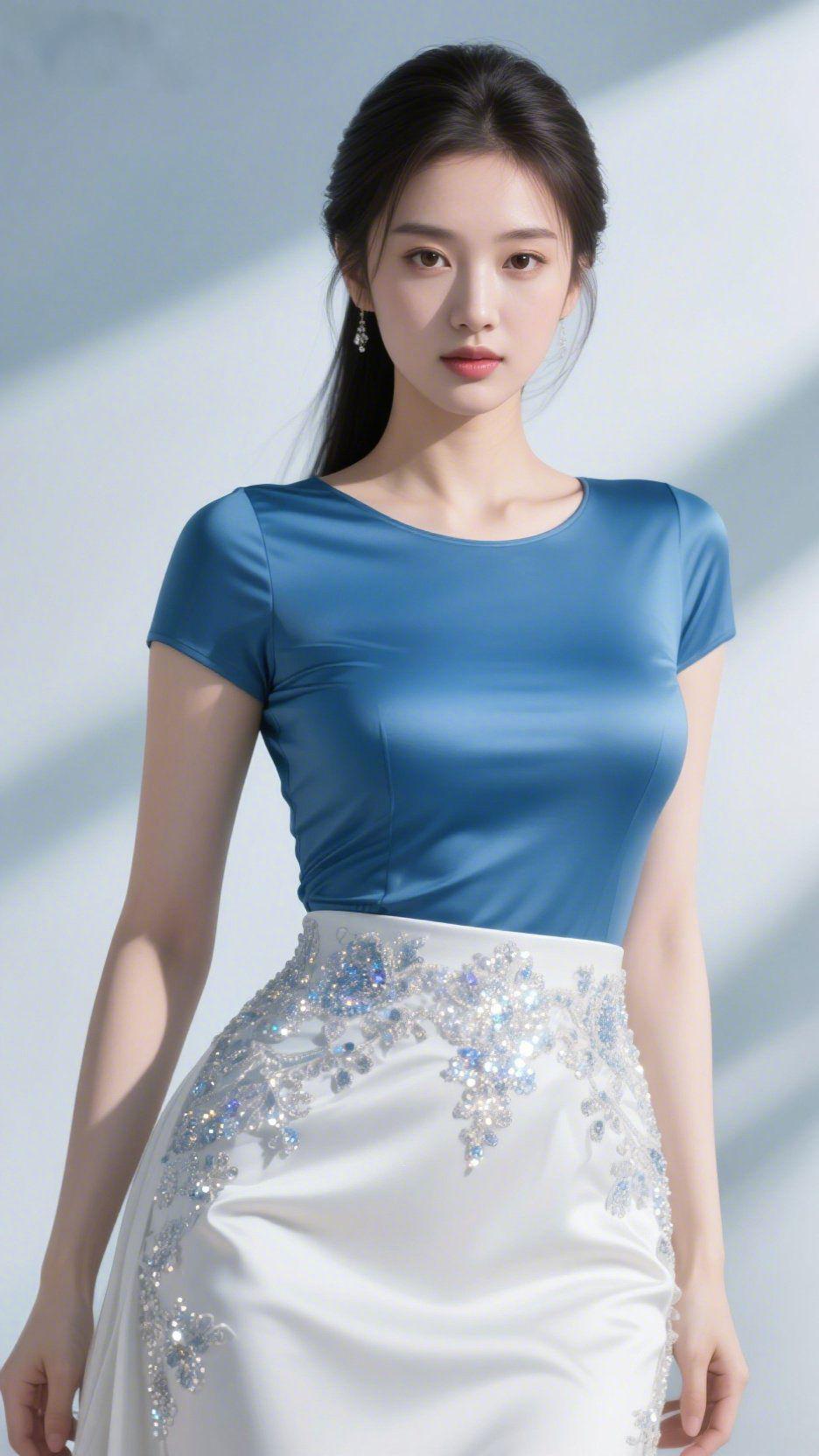 青衫白裙裹清柔 湖蓝上衣衬着温婉,配绣闪白裙,像把云的净与光的柔揉进衣装里。肩颈轻舒的雅致,混着裙间碎闪的亮,连气息都浸着温和的鲜活。 你该有过这样的时刻吧:穿一身清润衣装立在柔光里,无需刻意修饰,只衣料的润与光影相衬,便把寻常日常晕成温和的生动。 衣着从不是华丽堆砌,是把韵致融在轻软里——当青的清裹住白的净,那些藏在细节里的舒展,都是生活里温柔的注脚。 清柔衣装感 柔光松弛调